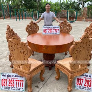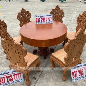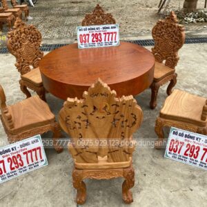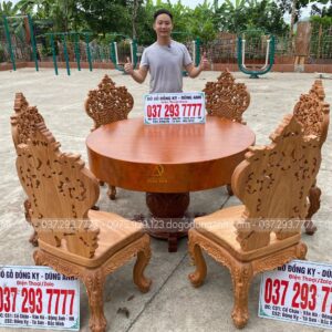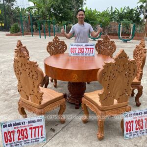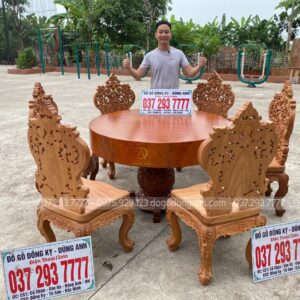 BỘ SIÊU PHẨM 6 GHẾ LOUIS HOÀNG GIA KẾT HỢP VỚI BÀN TRÒN NGUYÊN KHỐI – GỖ GÕ ĐỎ