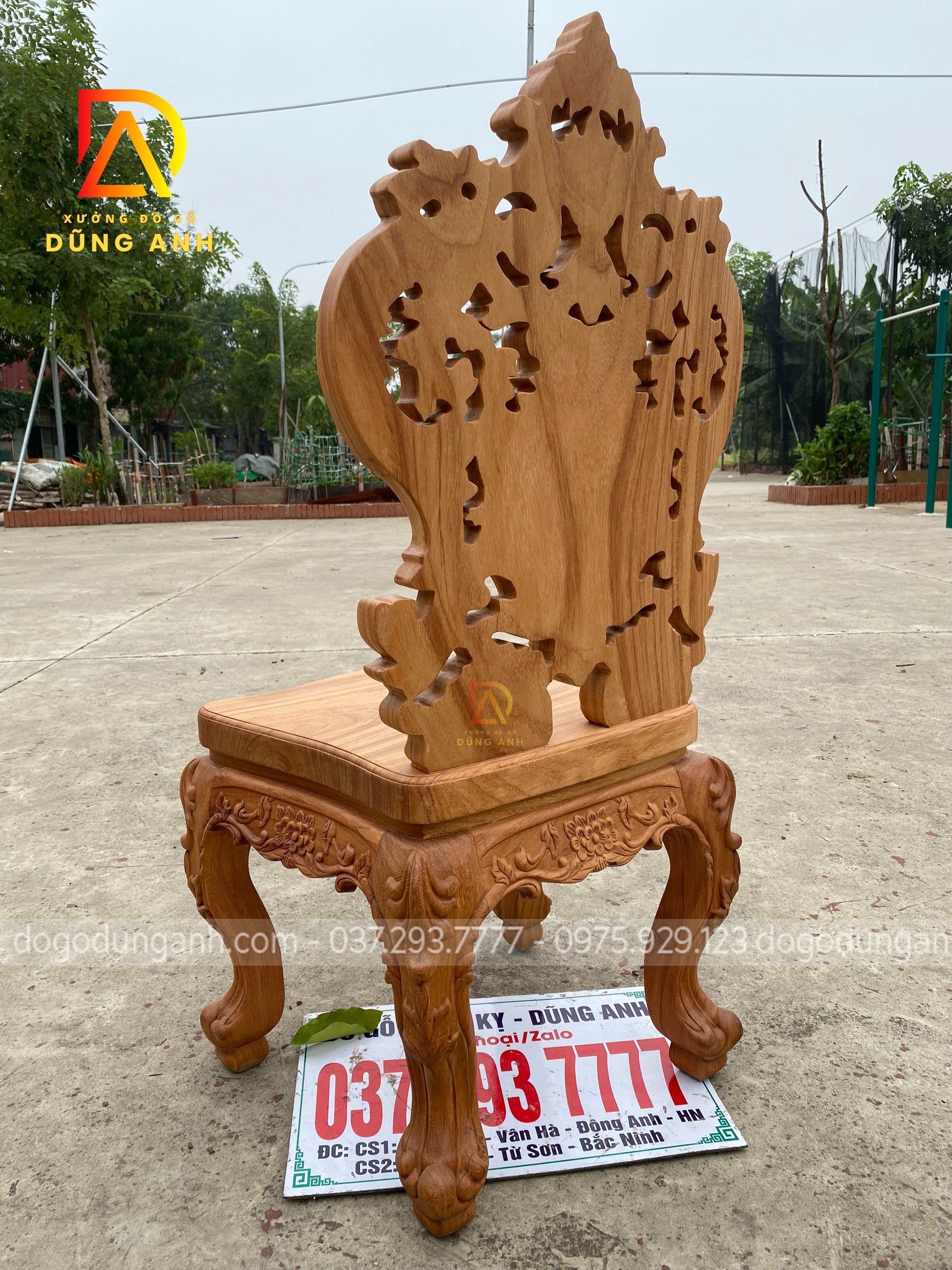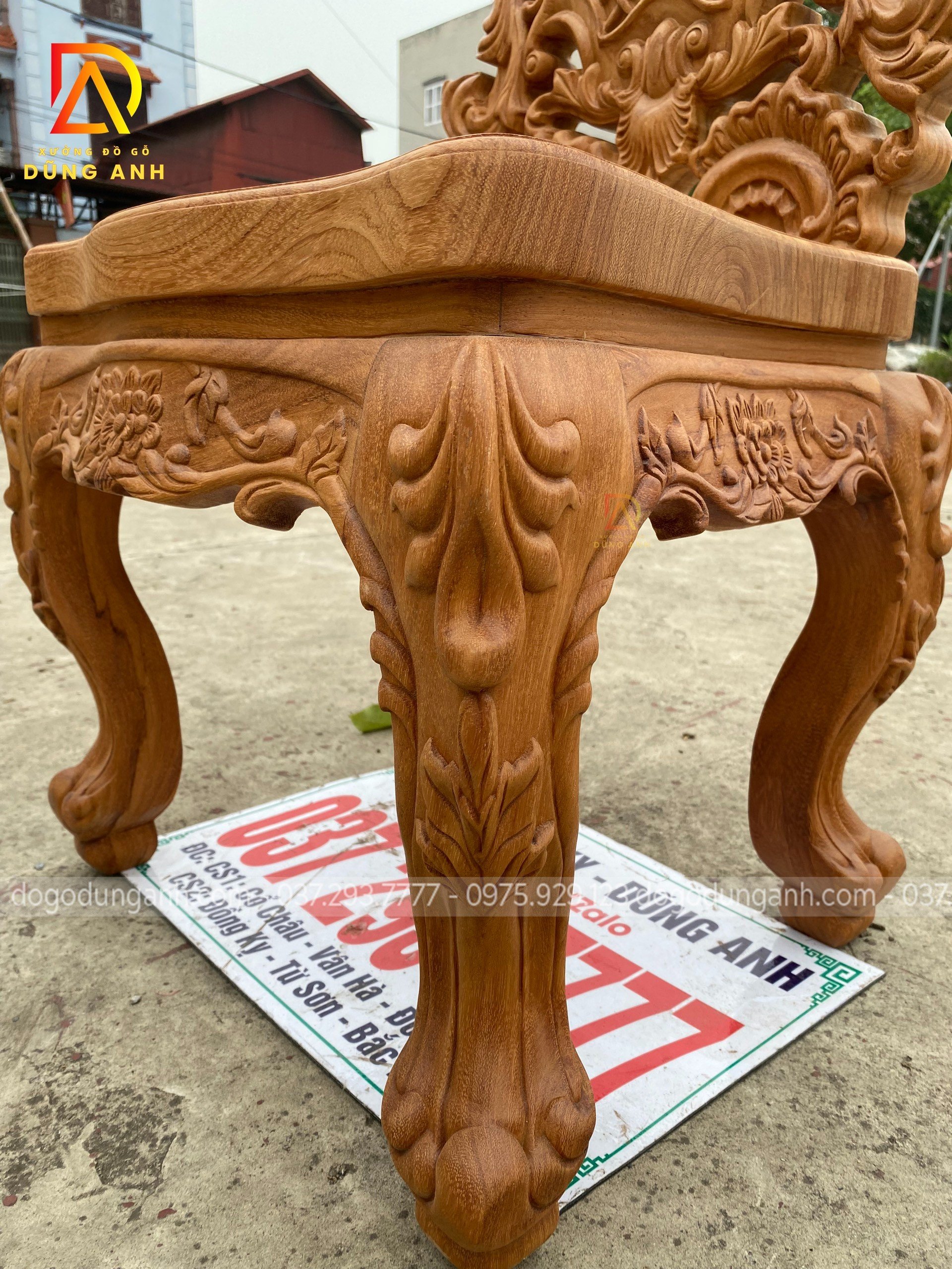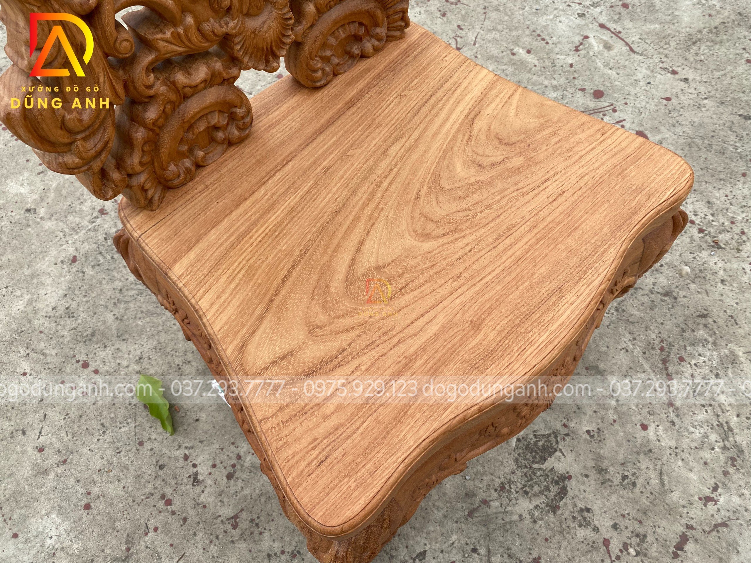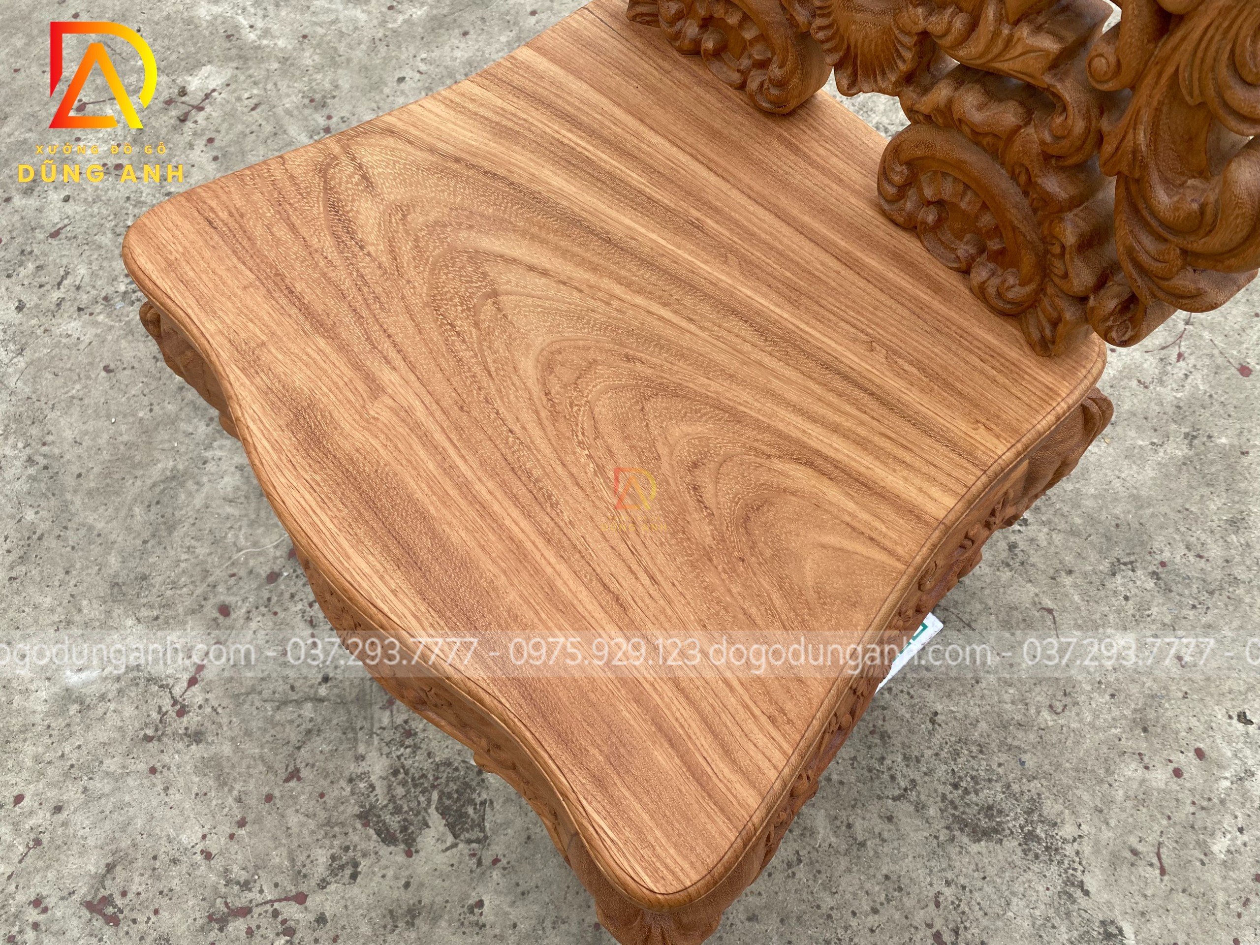 - Và tất nhiên mọi chi tiết trên chiếc ghế đều được đục trạm thủ công hoàn toàn bằng tay của những nghệ nhân giàu kinh nghiệm trong ngành tại Xưởng đồ gỗ Dũng Anh