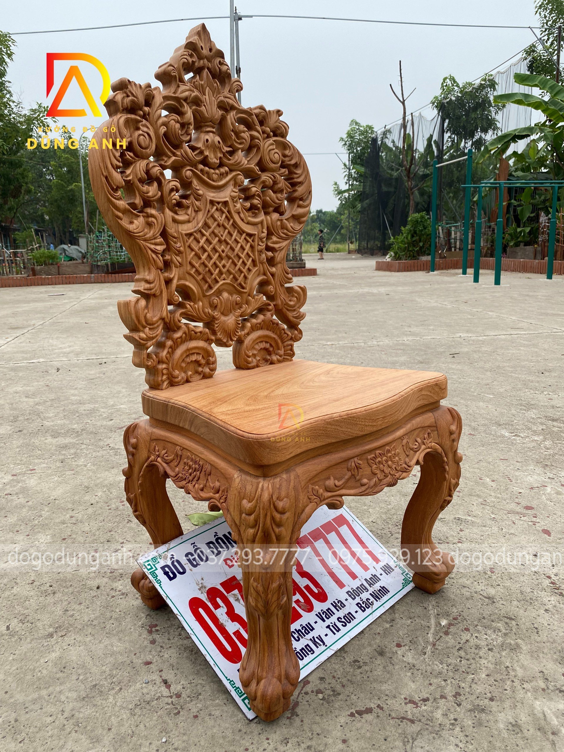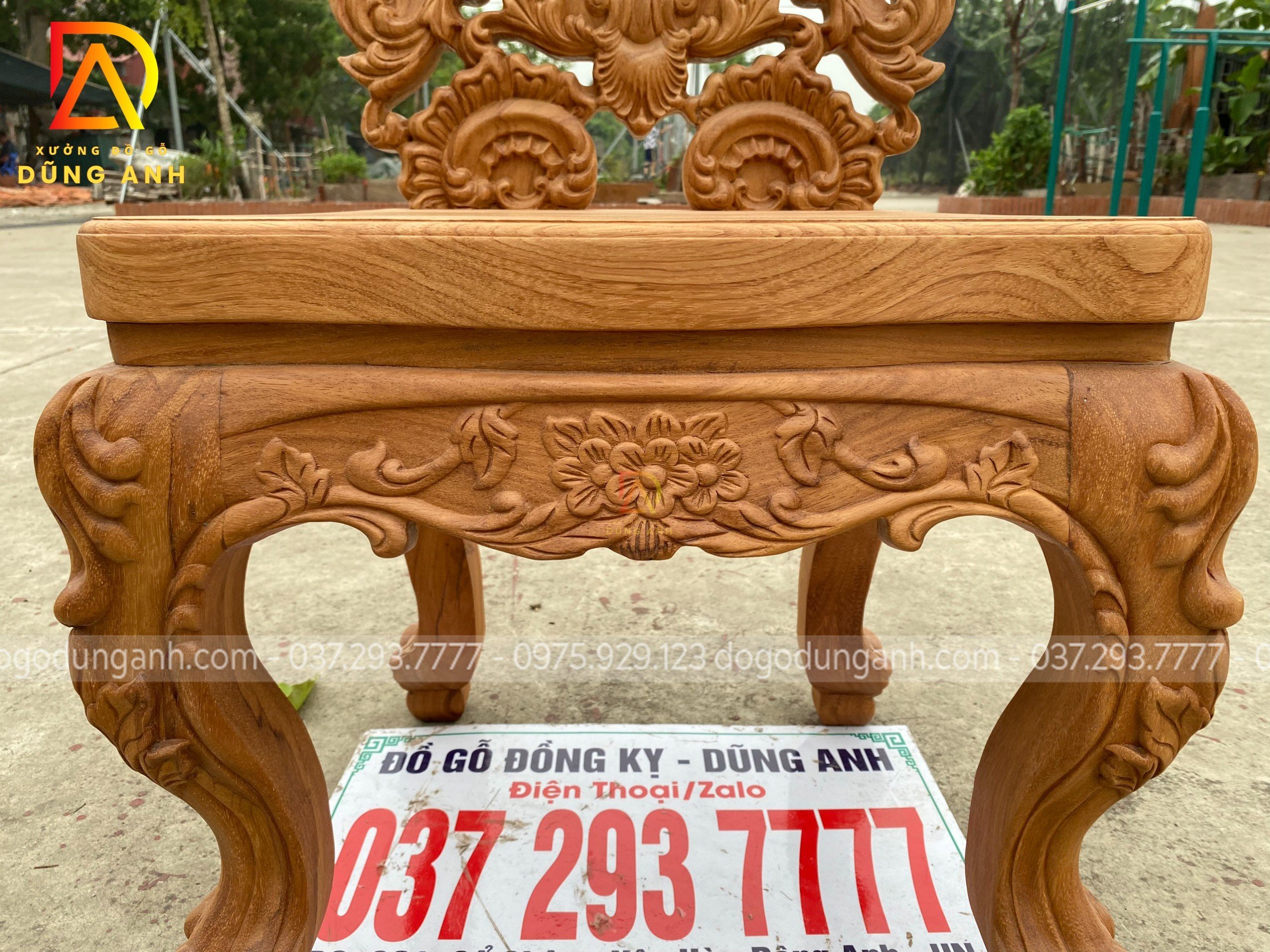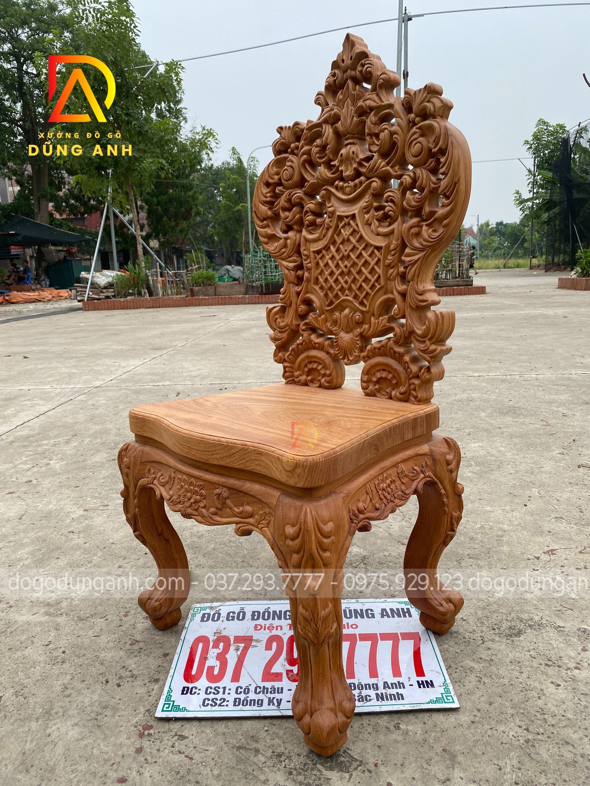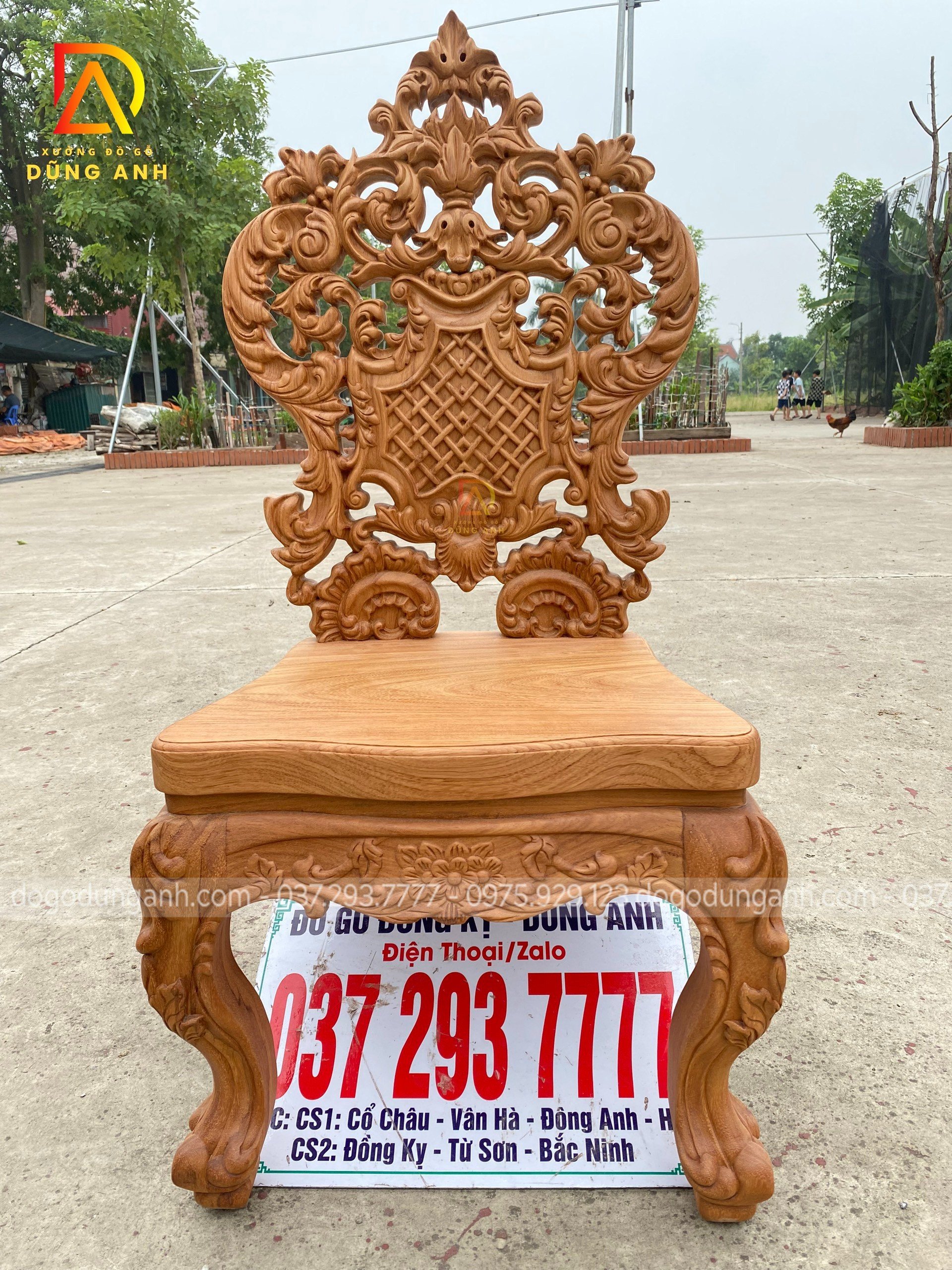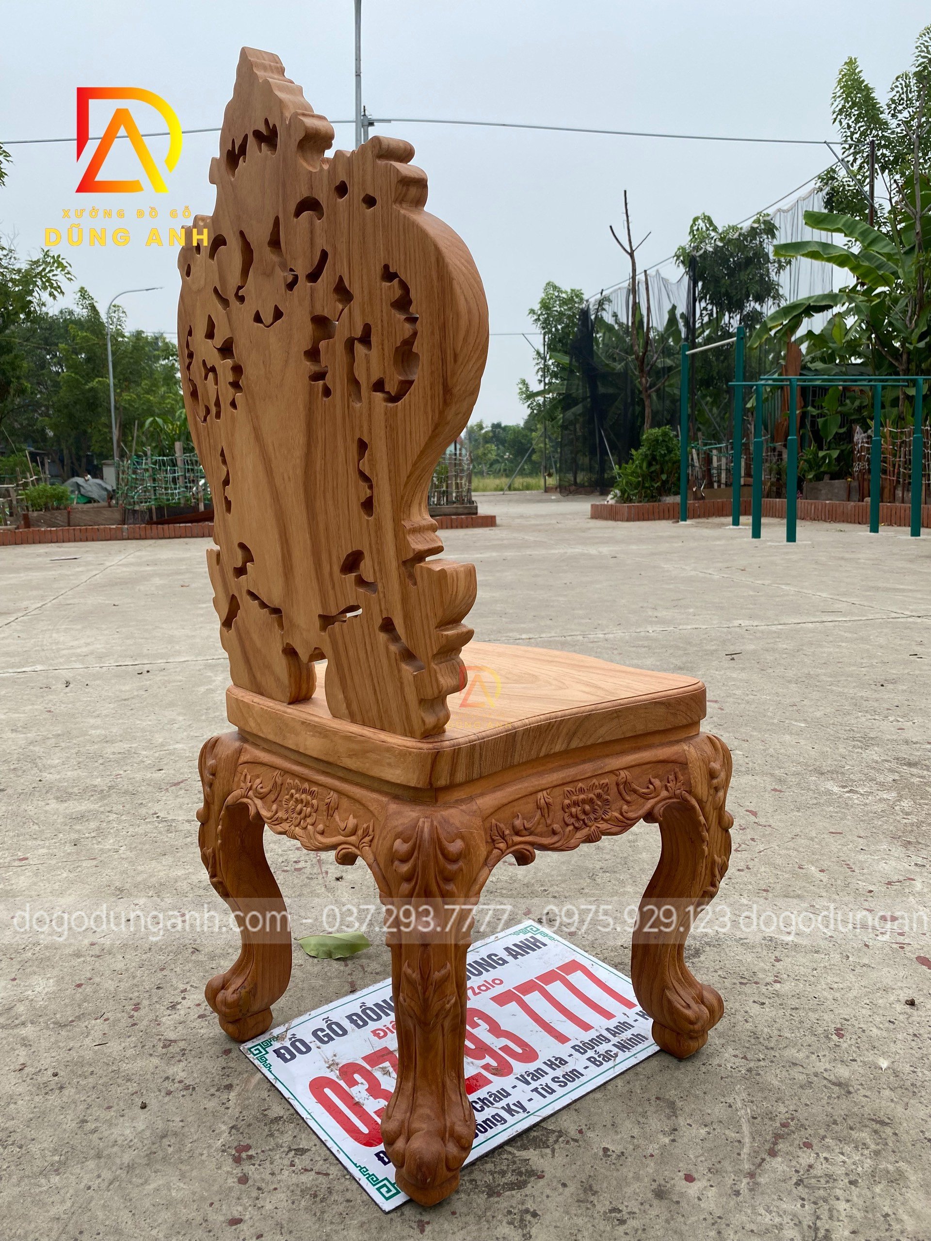 - Và tất nhiên mọi chi tiết trên chiếc ghế đều được đục trạm thủ công hoàn toàn bằng tay của những nghệ nhân giàu kinh nghiệm trong ngành tại Xưởng đồ gỗ Dũng Anh