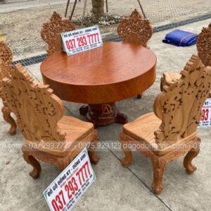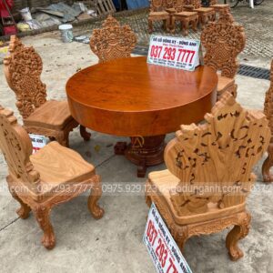 SIÊU PHẨM Bộ 6 ghế Louis Hoàng Gia kết hợp Bàn tròn NGUYÊN KHỐI chất liệu Gỗ Gõ Đỏ