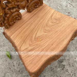 - Ghế còn sở hữu bộ tứ chân trụ được thiết kế kiểu chân ghế vuông 10cm được điêu khác một cách thủ công và tỉ mỉ đến từng chi tiết