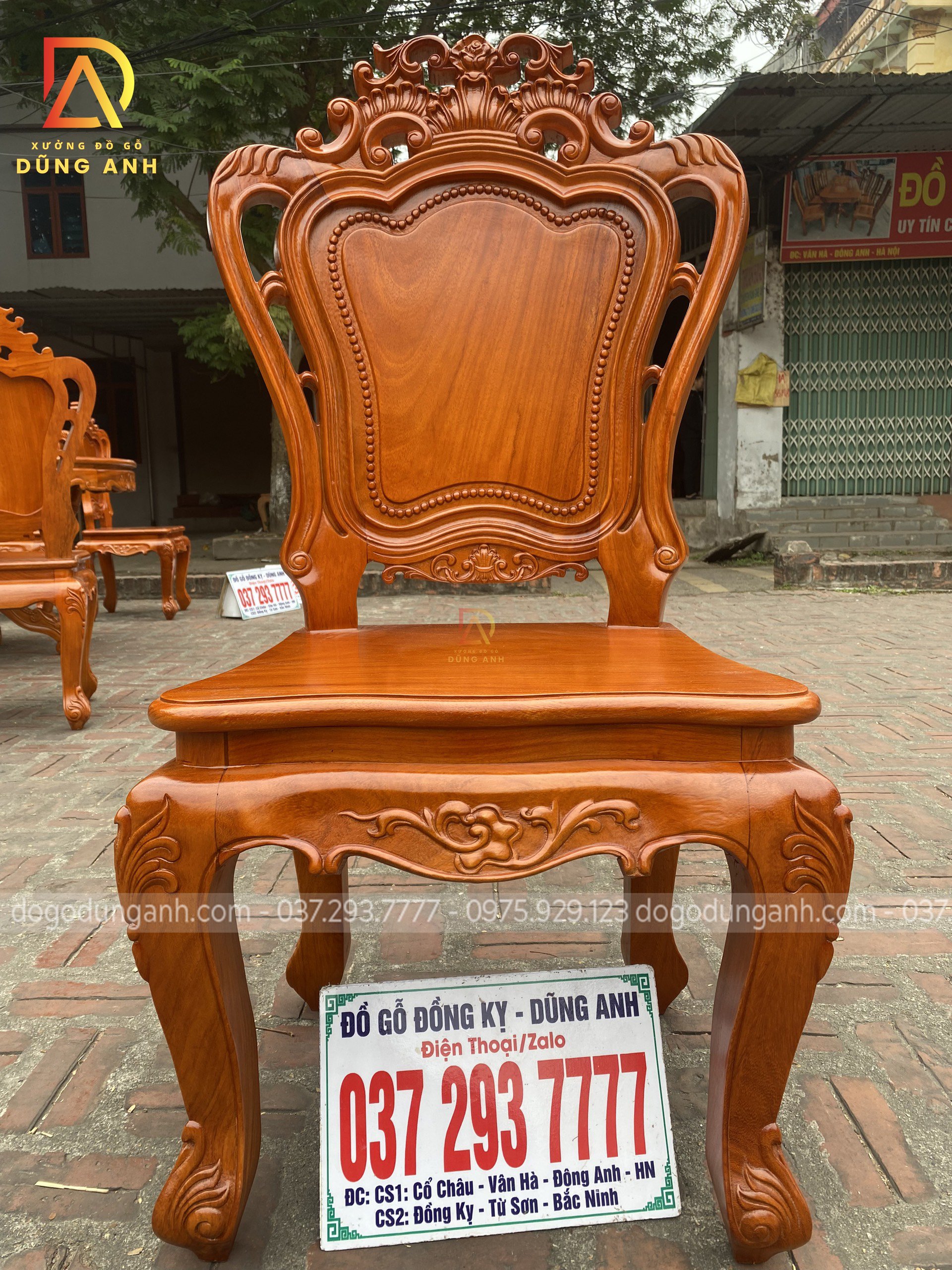 Bộ sản phẩm Xưởng đồ gỗ Dũng Anh bên em chế tác hoàn toàn từ 100% chất liệu gỗ gõ đỏ dòng gỗ cao cấp chất lượng với giá thành khá đắt đỏ. Được xưởng chọn lọc kỹ càng nên đảm bảo độ đanh chắc hoàn hảo để tạo nên các họa tiết đục tinh xảo, nổi bật theo phong cách louis hoàng gia tân cổ điển vô cùng sang trọng và bắt mắt.