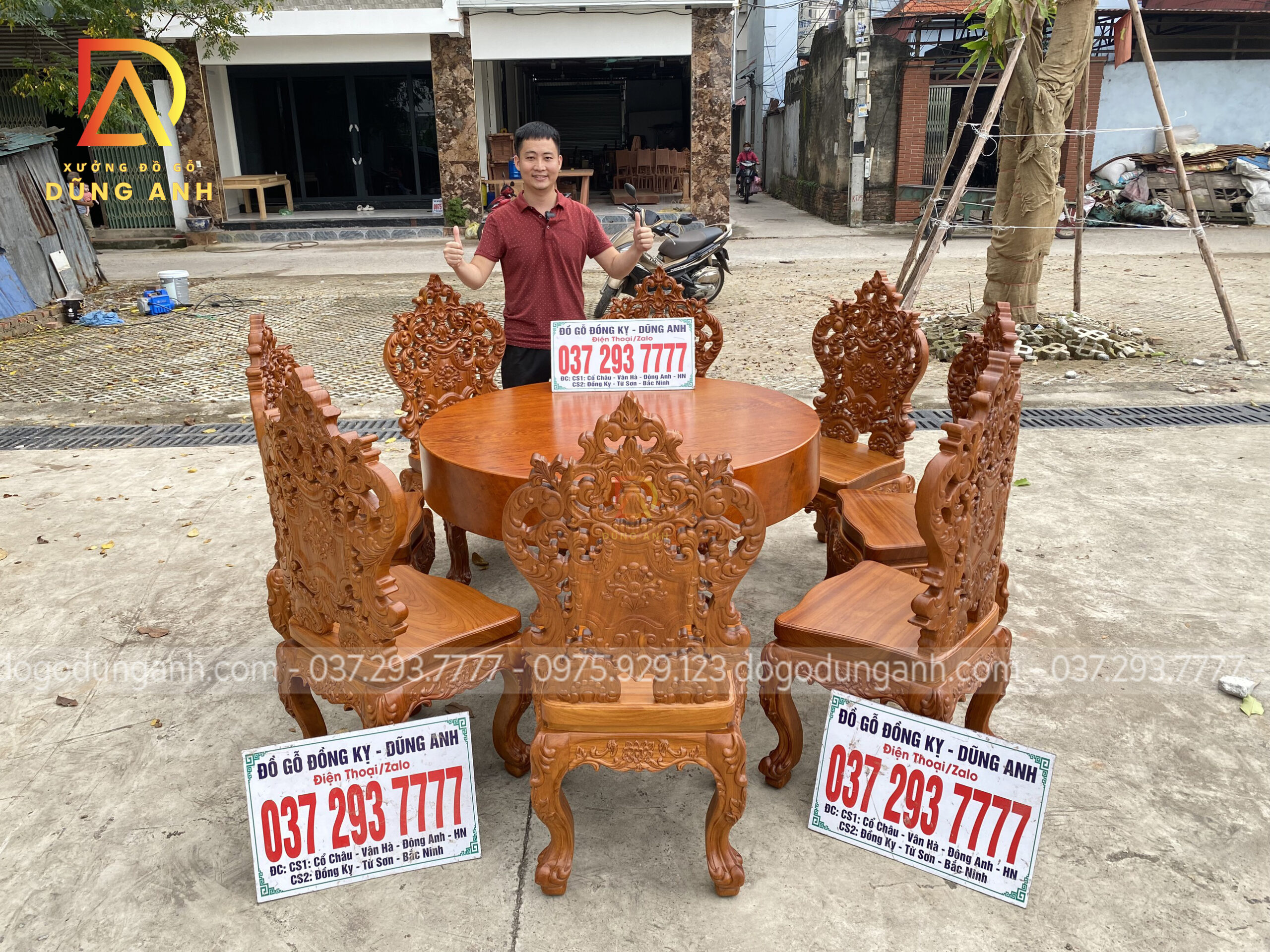 Quý khách có thể tham khảo thêm các mẫu bàn ghế ăn đẹp, bàn ghế ăn nguyên khối, các mẫu ghế ăn đẹp thì có thể liên hệ ngay với Xưởng đồ gỗ Dũng Anh qua: