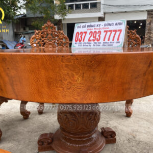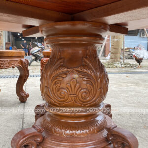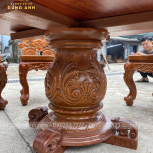 - Để giảm bớt sự trơn tru của chiếc bàn thì phần chân trụ được Xưởng đồ gỗ Dũng Anh đục trạm những đường nét hoa văn kiểu Pháp , tuy là đục CNC nhưng đã được đục tỉa lại bằng tay của những người thợ lâu năm cho nên nhìn những đường hoa văn vô cùng sắc nét .
