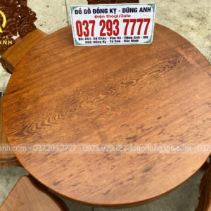 BỘ SIÊU PHẨM 8 GHẾ KẾT HỢP VỚI BÀN TRÒN NGUYÊN KHỐI – GỖ GÕ ĐỎ