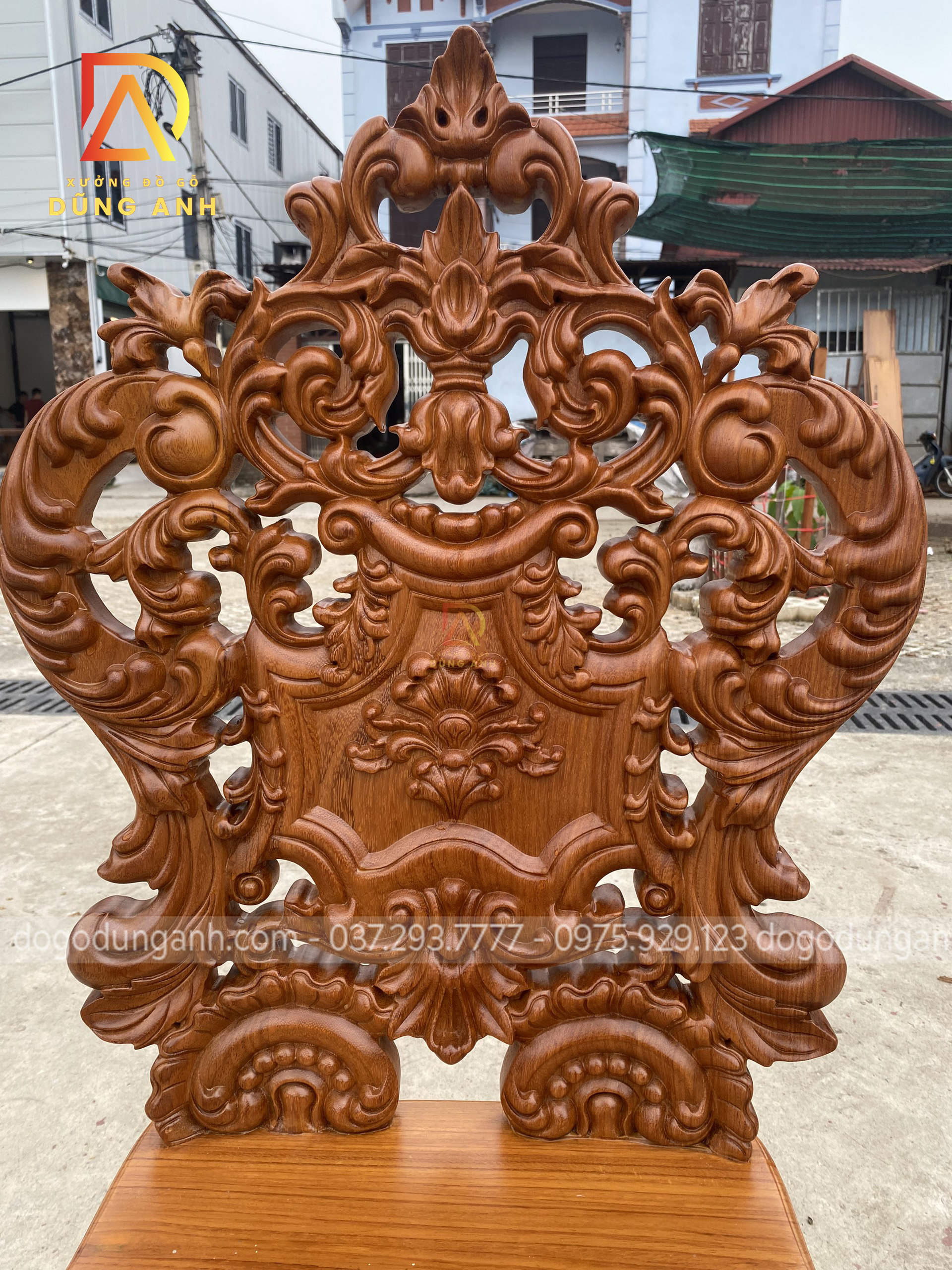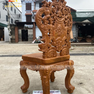 - Để chiếc ghế thêm bắt mắt , Xưởng đồ gỗ Dũng Anh đã đục trạm trên bản tựa những hoa văn họa tiết mang đậm chất phong cách Hoàng Gia kiểu Pháp , 1 vẻ đẹp VÔ CÙNG SANG TRỌNG