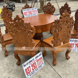 SIÊU PHẨM lousi Hoàng Gia + bàn tròn NGUYÊN KHỐI kích thước khủng chất liệu gỗ GÕ ĐỎ :