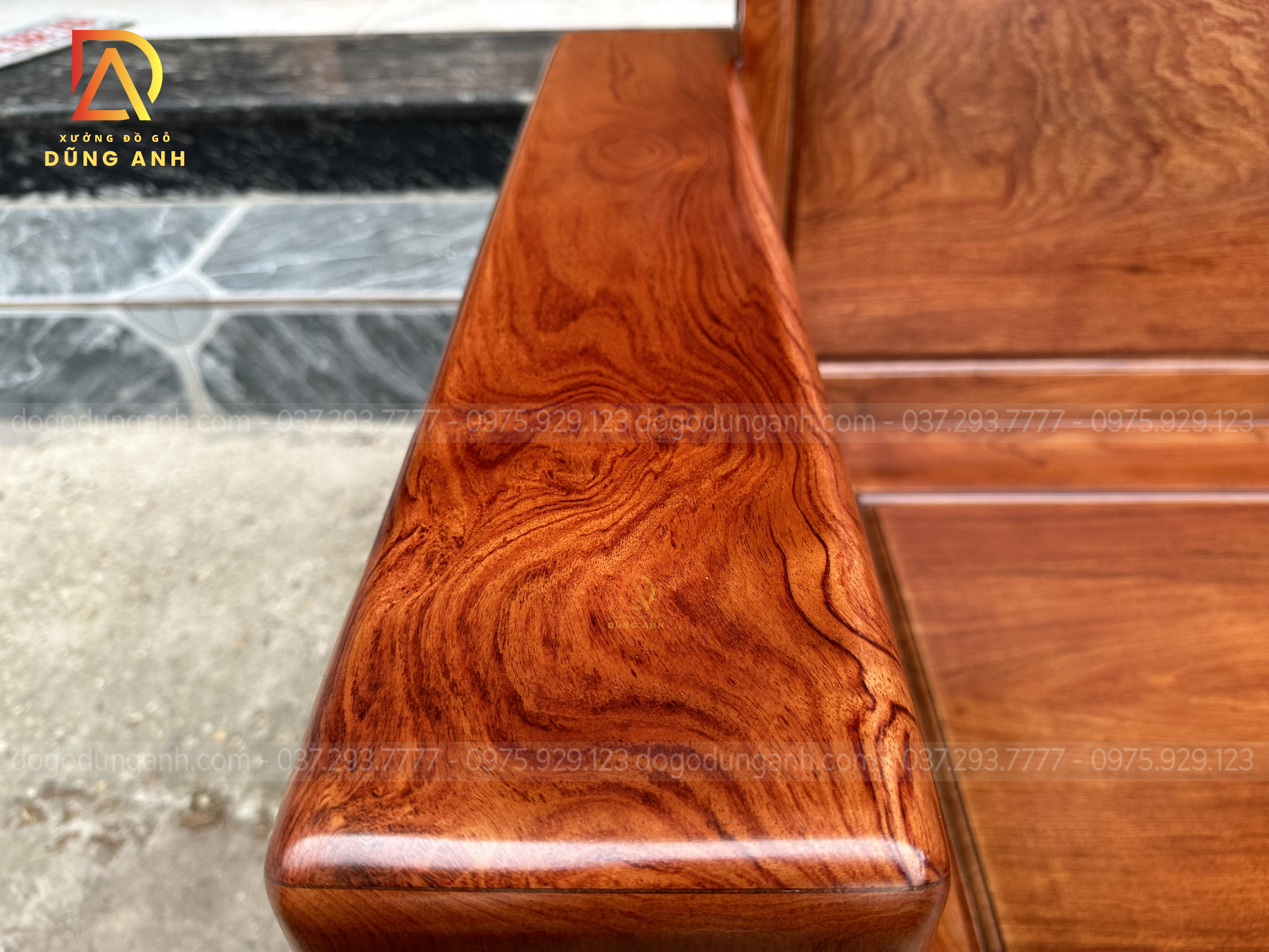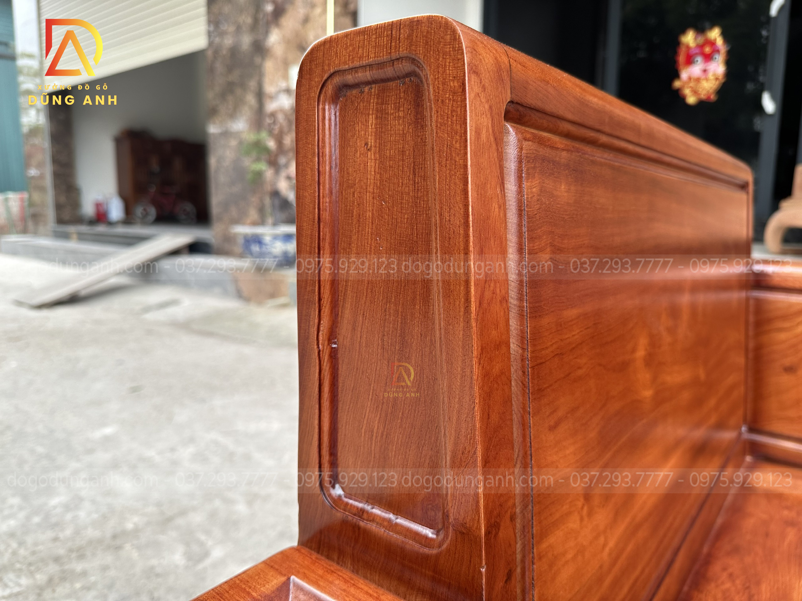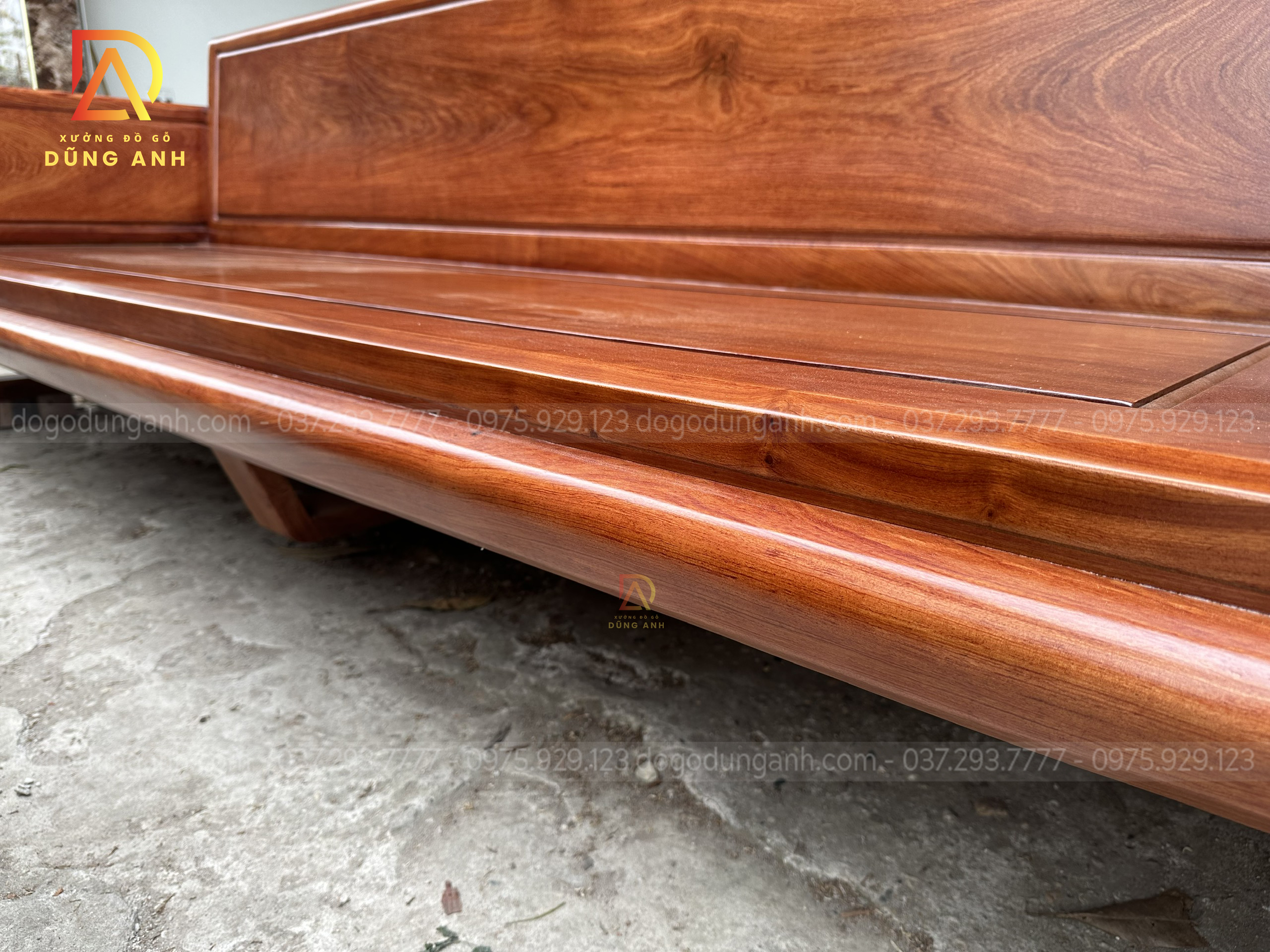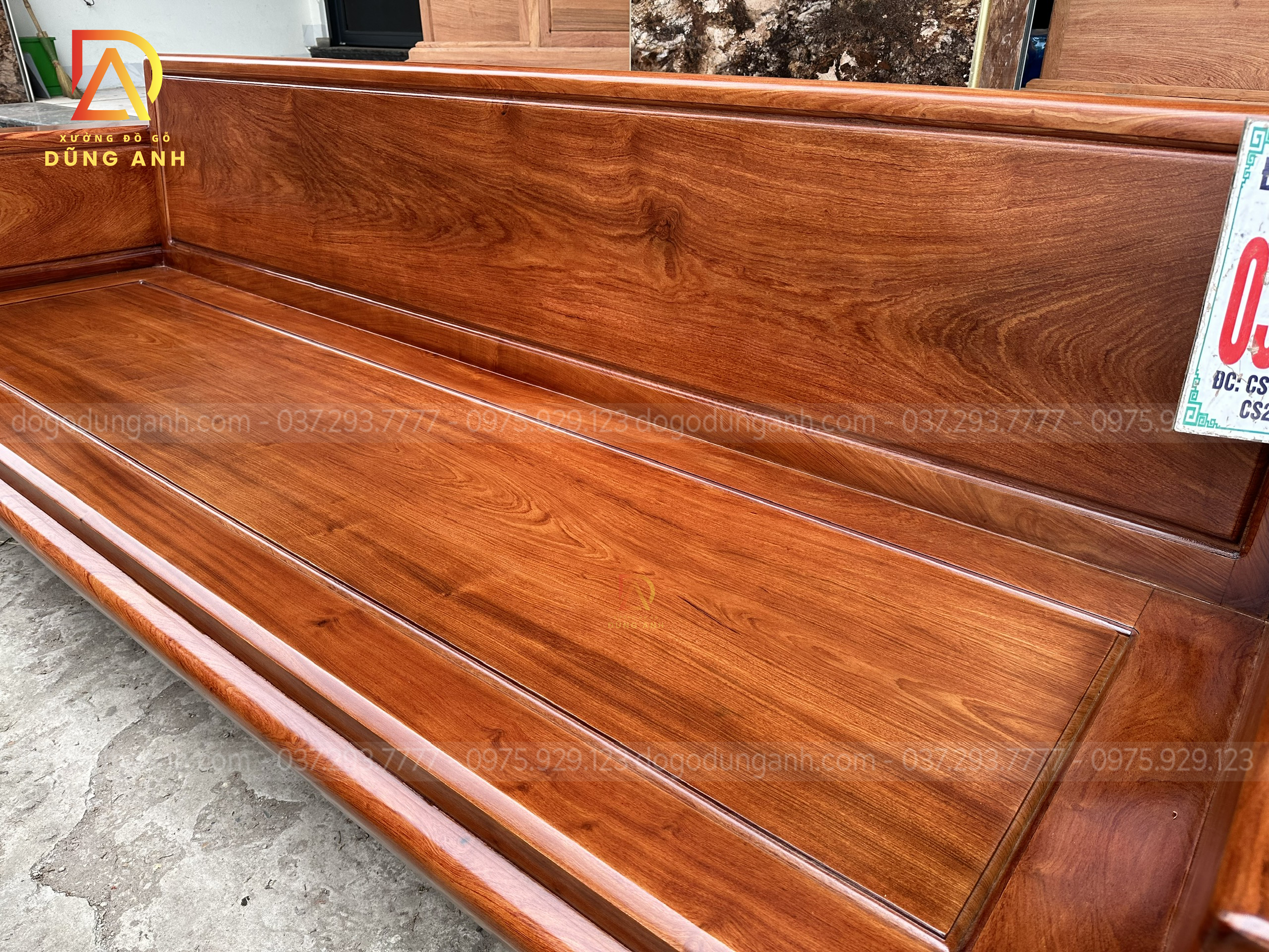 - Chiếc văng có kích thước 280×85 cm , được bên xưởng Xưởng đồ gỗ Dũng Anh chọn lọc kĩ lưỡng từng cây gỗ để cho ra mắt được sản phẩm sở hữu độ vân đẹp mắt như vân mắt cáo tạo thêm cho chiếc ghế có điểm nhấn hơn đẹp mắt hơn