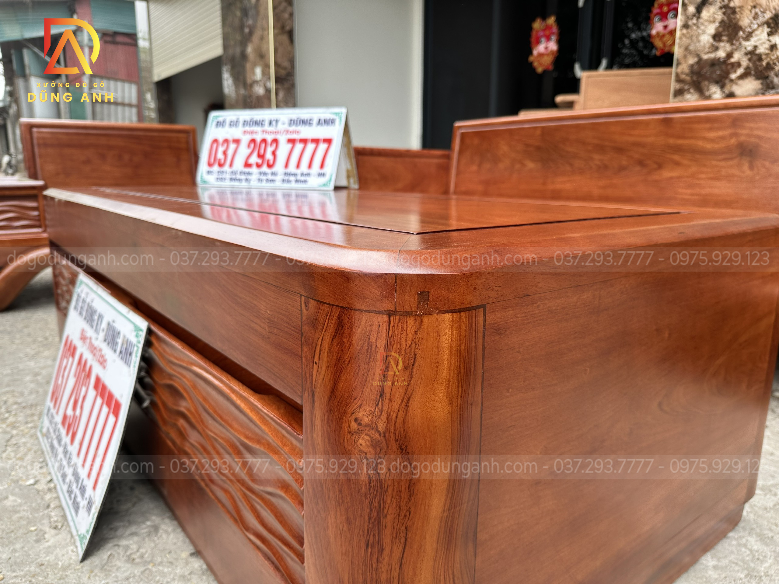 - Sản phẩm được lựa lọc kĩ lưỡng phải mất 2 – 3 tháng để chọn ra những cây gỗ có độ vân đẹp để làm thành từng chi tiết và ăn khớp với tổng thể toàn bộ của sản phẩm