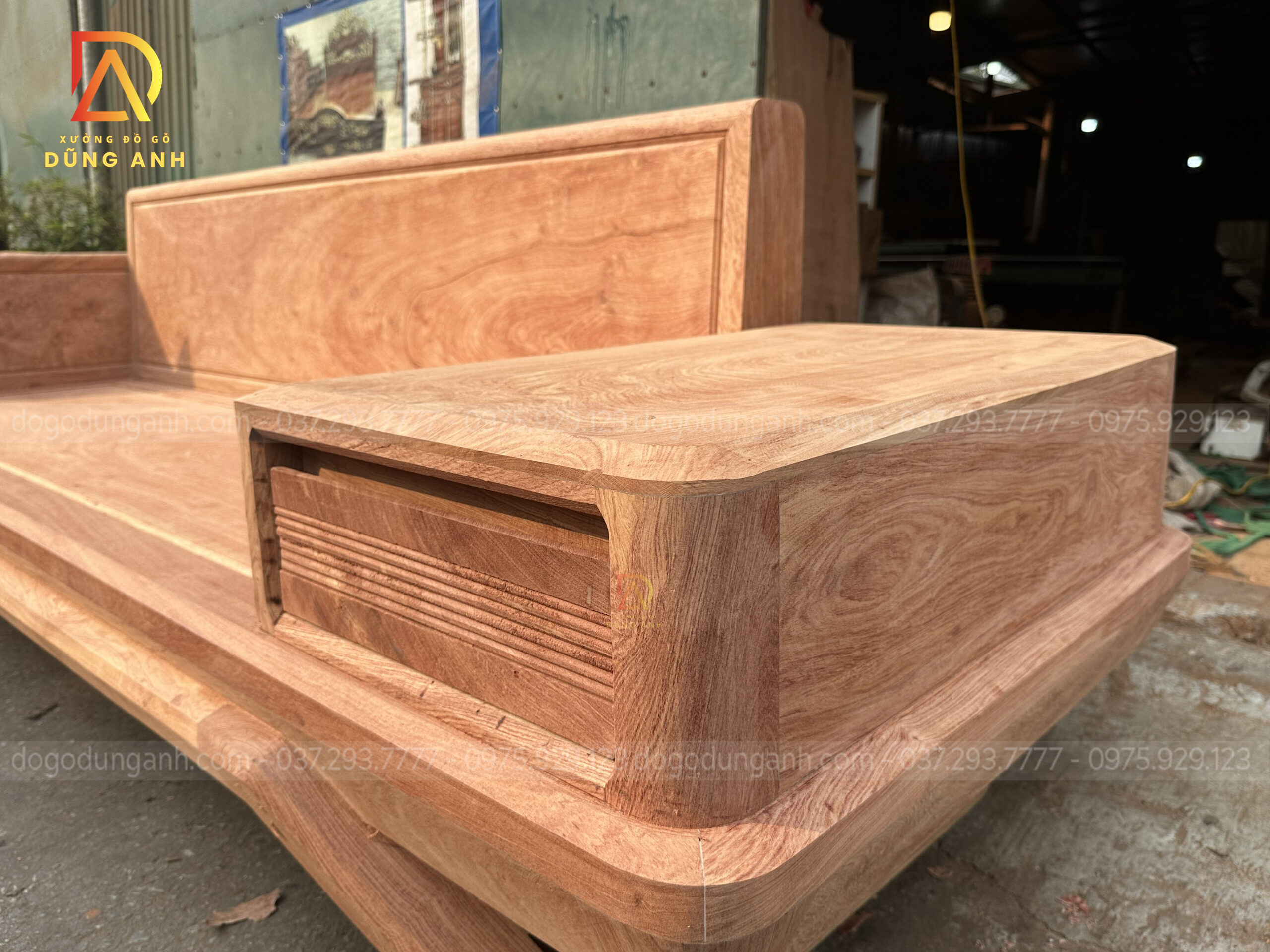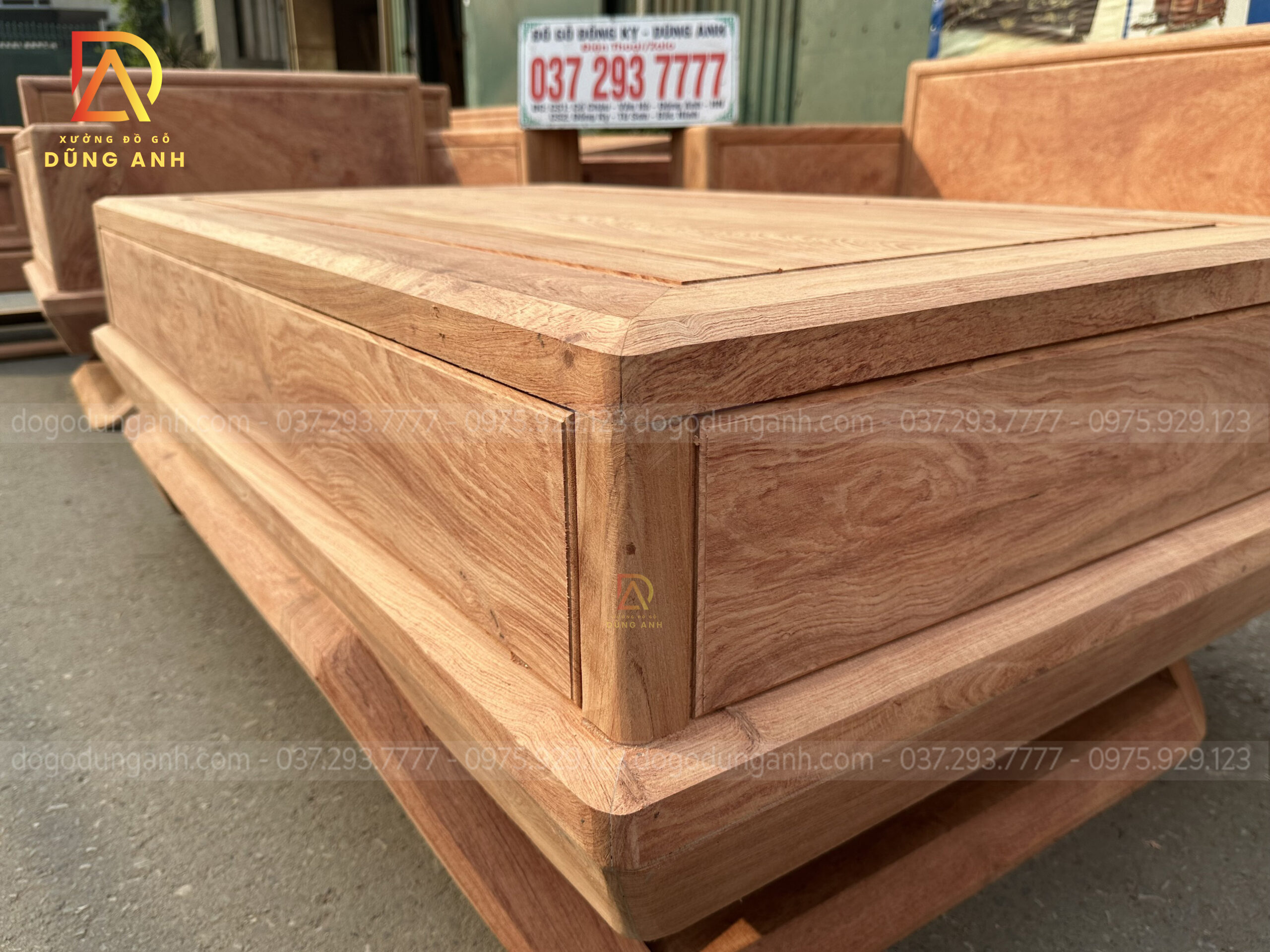 - Ngăn kéo được làm kiểu xương cá trung quốc vô cùng chắc chắn , ở ngoài được đục bó đũa để tạo thêm điểm nhấn hơn cho chiếc văng