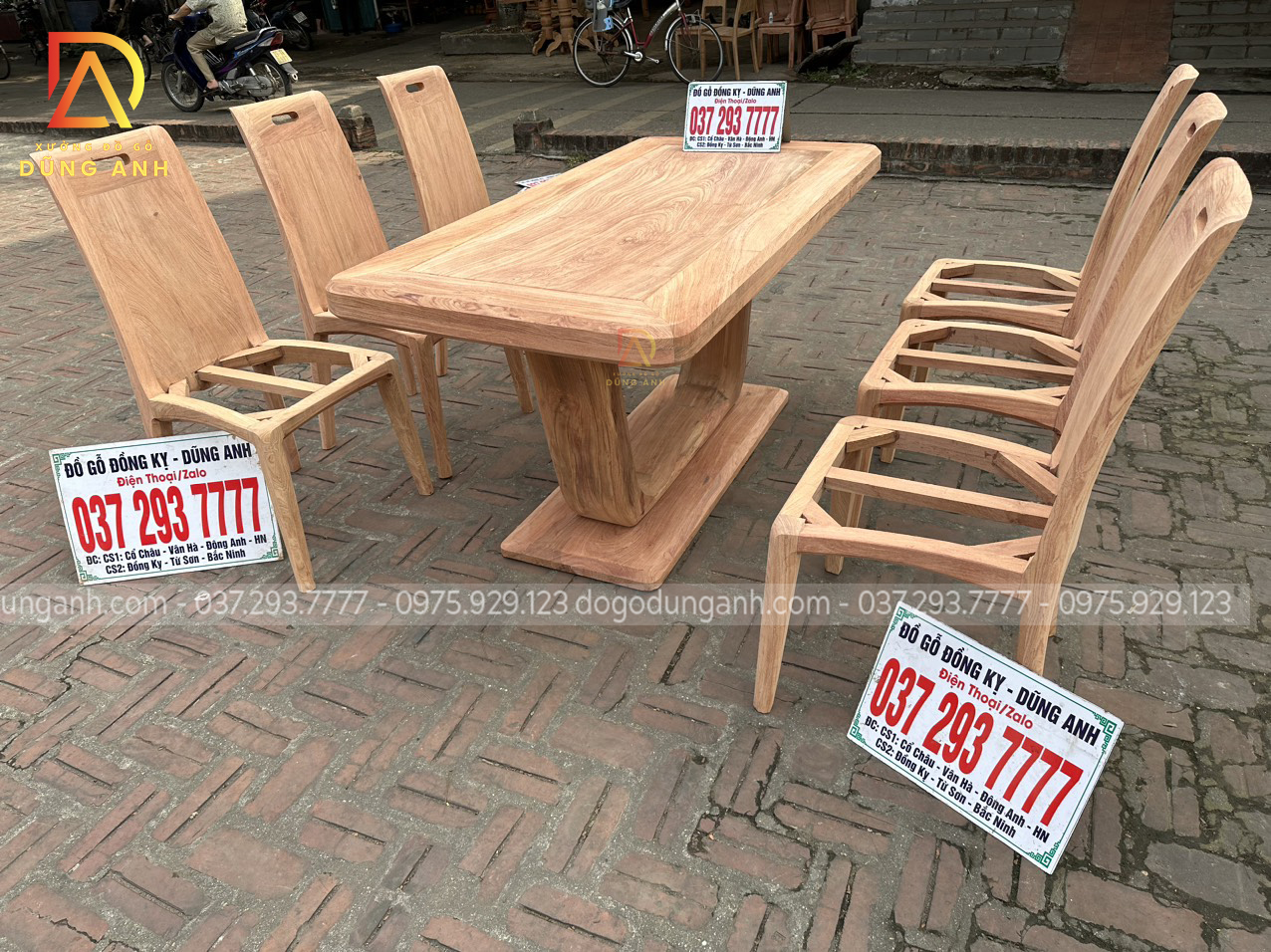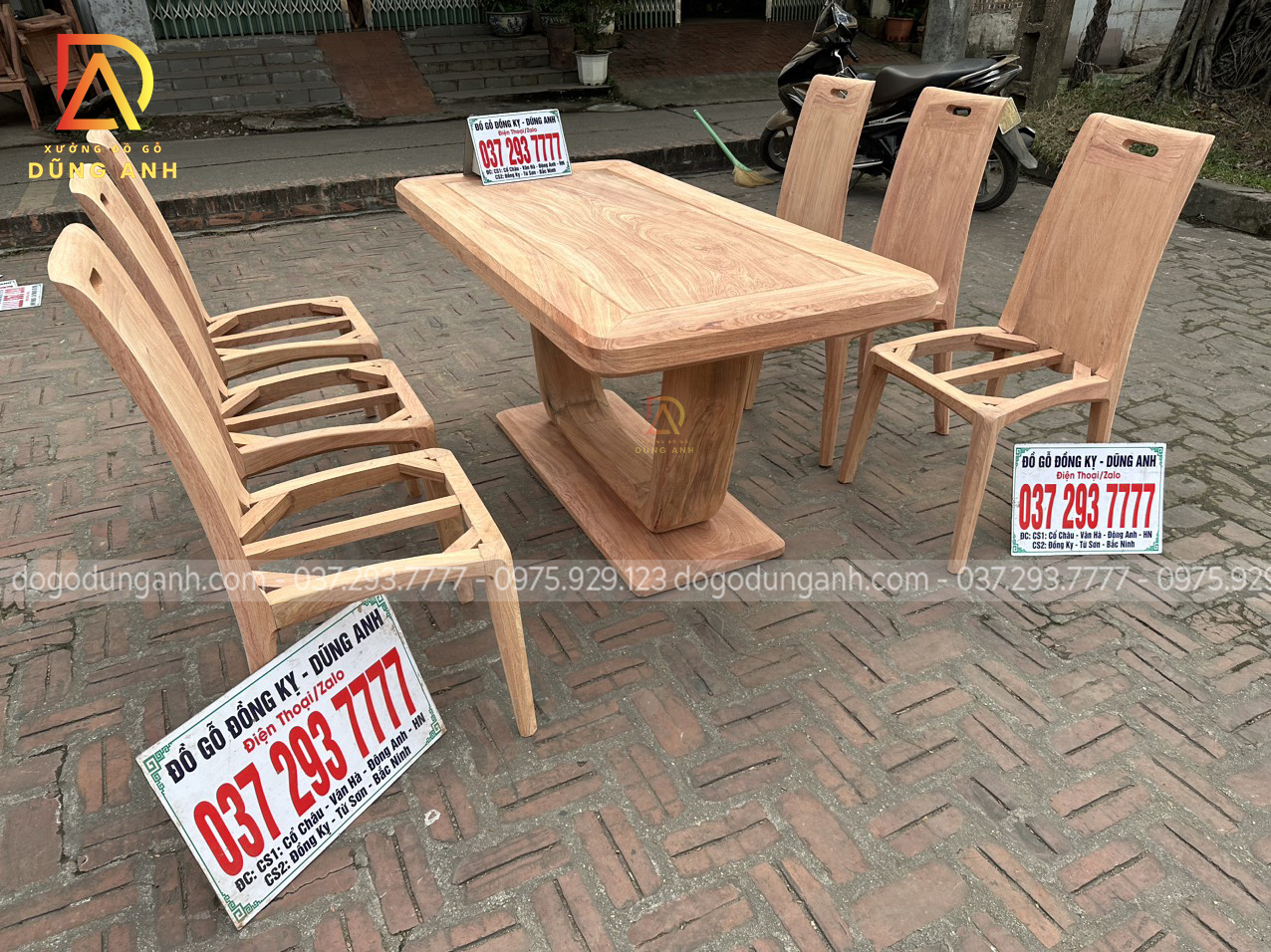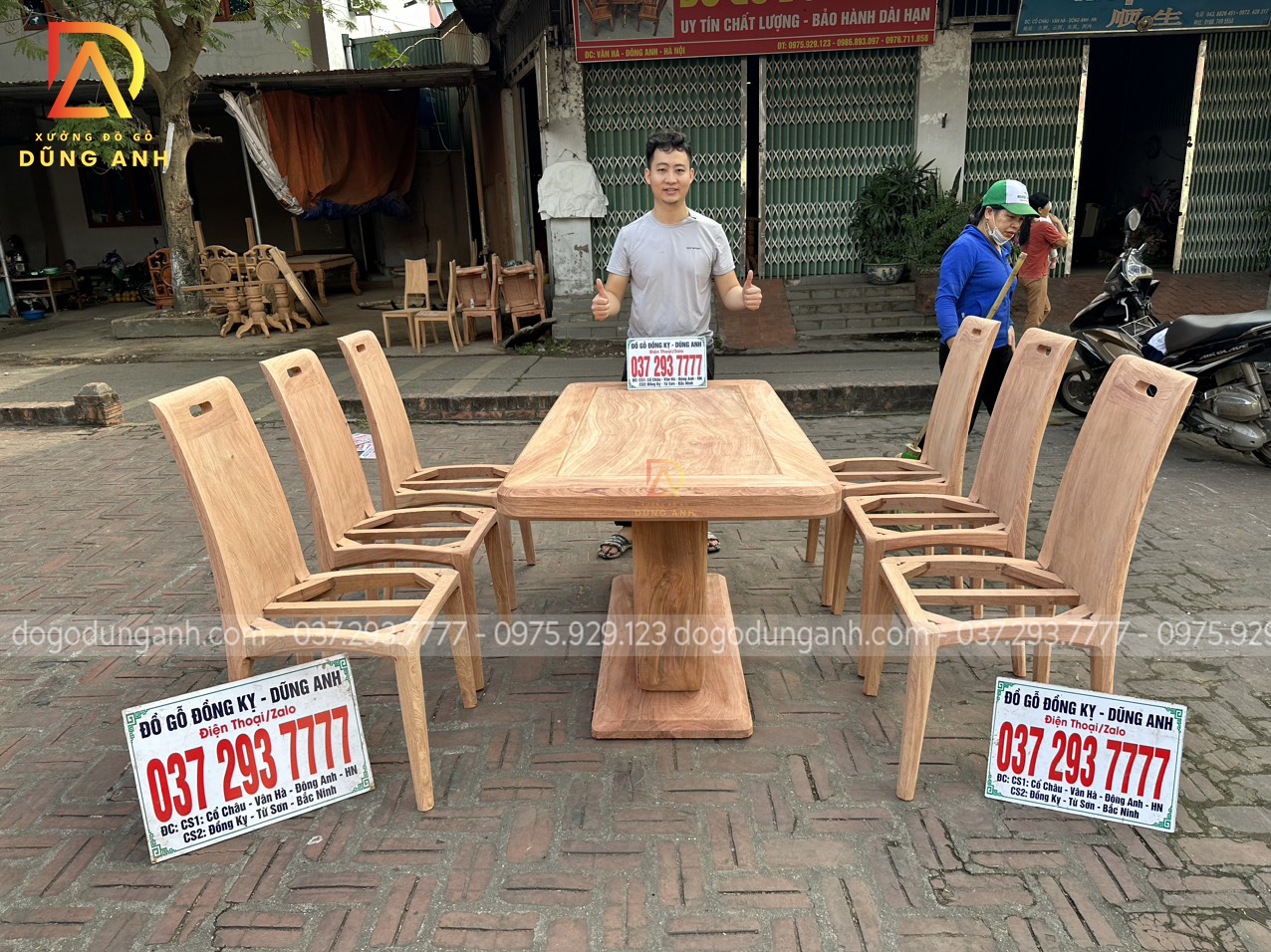 Quý khách có thể tham khảo thêm các mẫu bàn ghế ăn đẹp, bàn ghế ăn nguyên khối, các mẫu ghế ăn đẹp thì có thể liên hệ ngay với Xưởng đồ gỗ Dũng Anh qua: