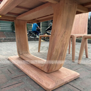 - Bản mộc bộ bàn trụ chữ U kết hợp 8 ghế chữ Thọ gỗ Hương Đá