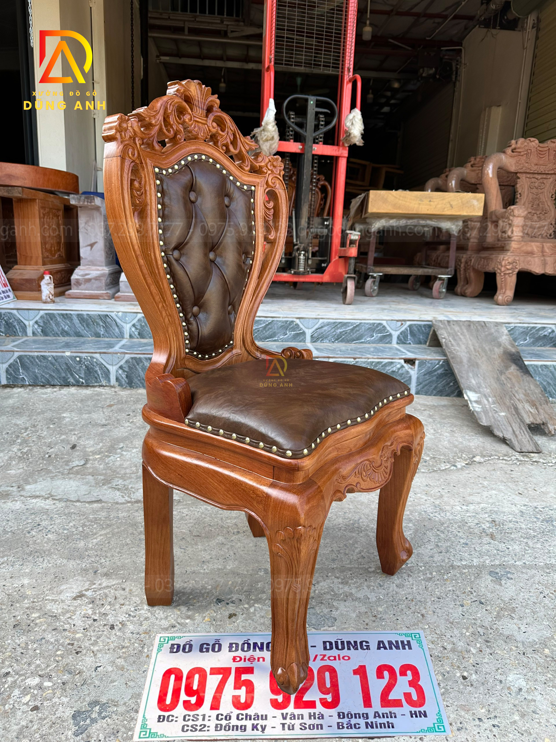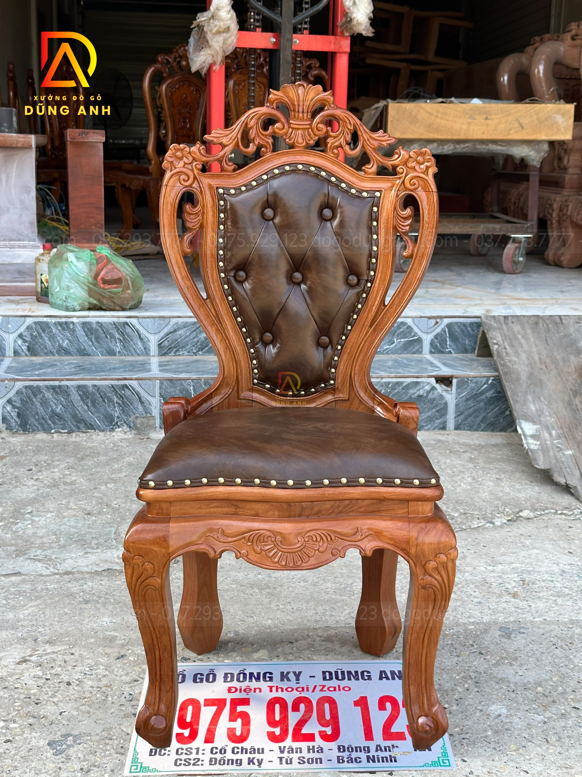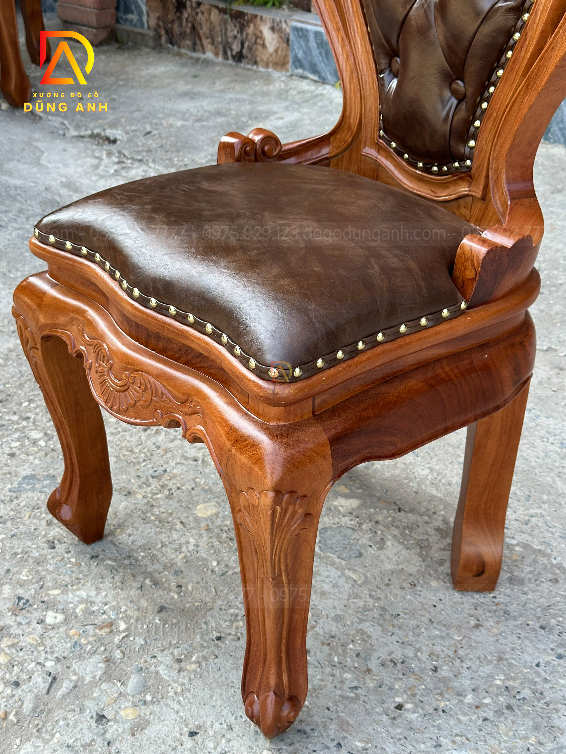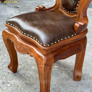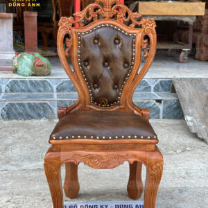 Bộ sản phẩm gồm 12 ghế Louis hoàng gia, được chế tác tỉ mỉ từ gỗ gõ đỏ Pachy, mang lại vẻ đẹp lịch lãm và trang trọng cho không gian sống. Thiết kế ghế theo phong cách Louis truyền thống, với những đường cong mềm mại và các chi tiết chạm khắc tinh xảo, tạo nên sự nổi bật và cuốn hút. Mỗi chiếc ghế được bọc đệm cao cấp, không chỉ đảm bảo sự thoải mái khi ngồi mà còn tăng thêm tính thẩm mỹ cho sản phẩm. Đệm được bọc bằng chất liệu vải hoặc da cao cấp, dễ dàng vệ sinh và bảo trì.