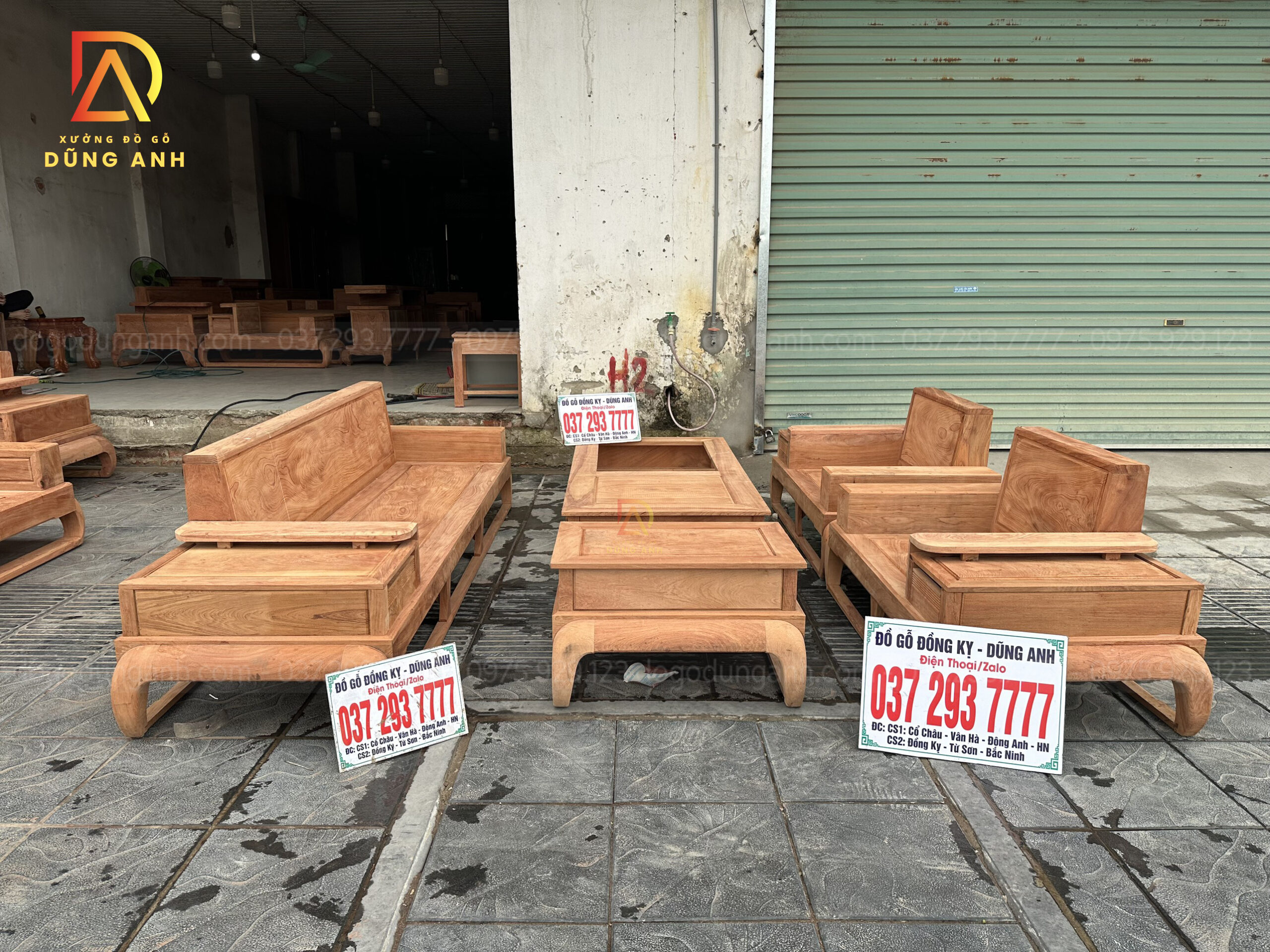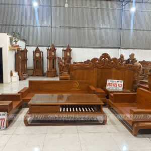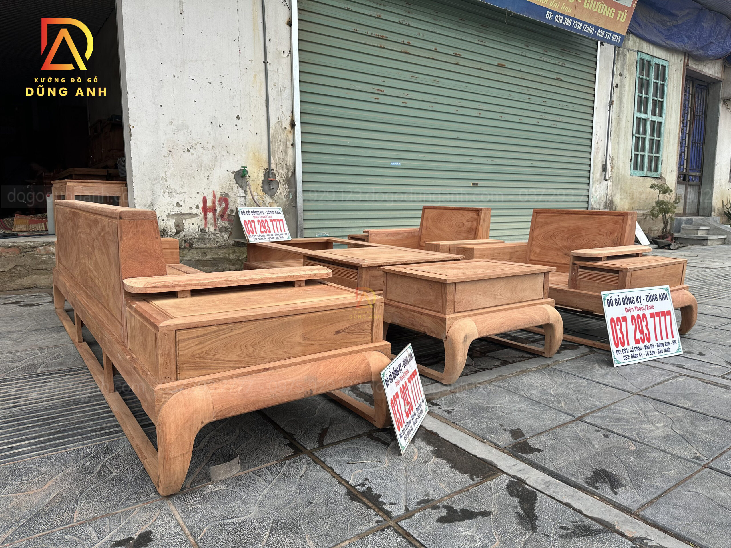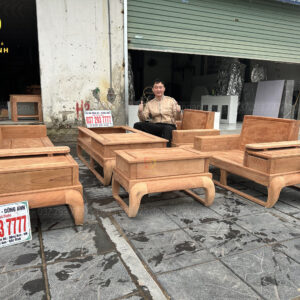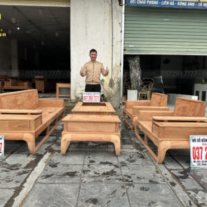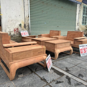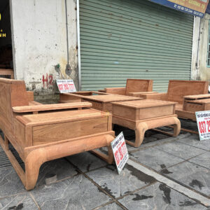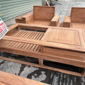 - Đi với đó là 2 chiếc ghế đơn có chiều rộng 135 cm và chiều sâu 75 cm được chọn lọc kĩ càng từ ván hay tựa đều là chất liệu gỗ đẹp nhất