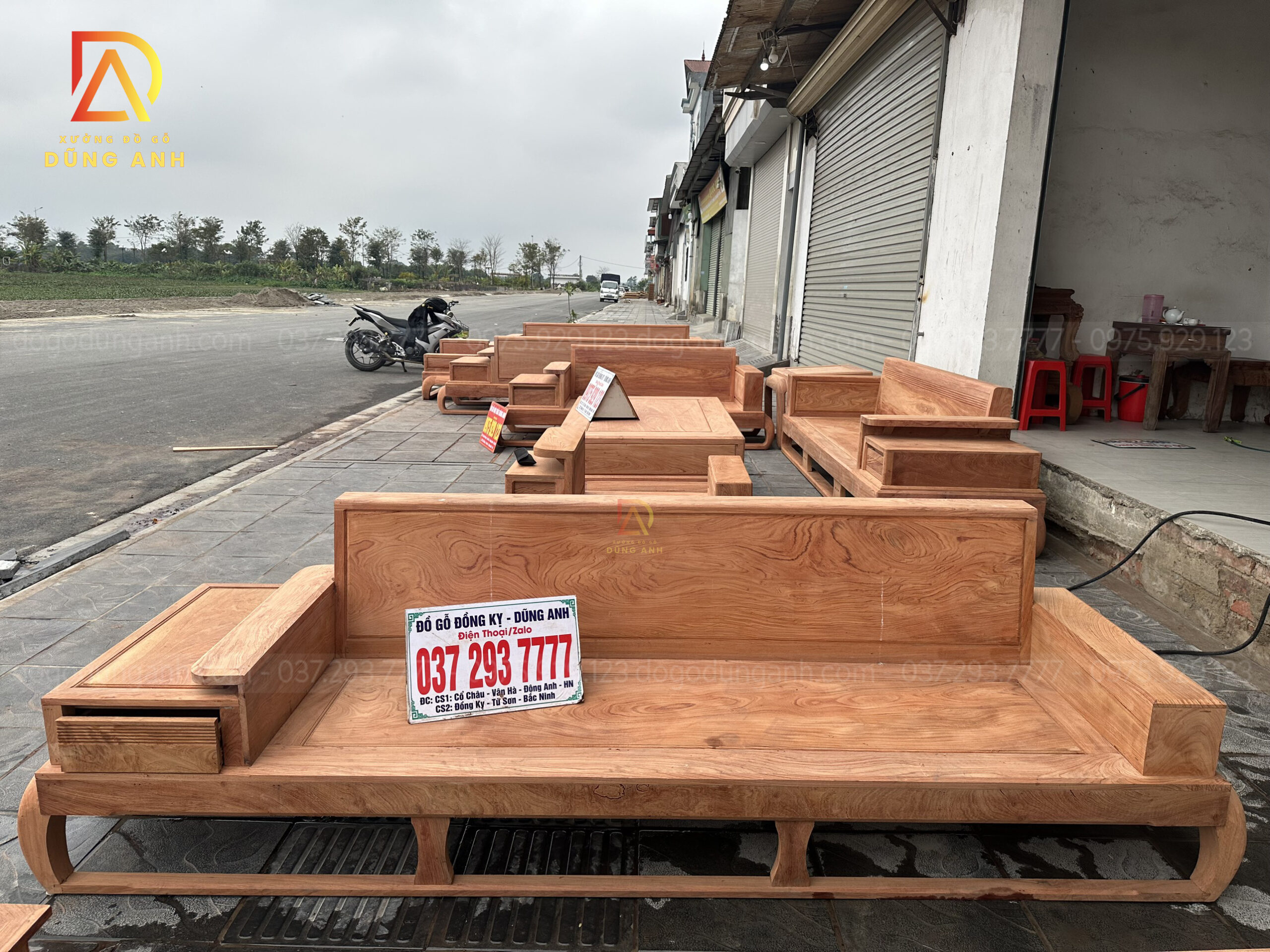 - Chiếc văng dài có chiều dài 260 cm , chiều sâu 75 cm và chiều cao 70 cm được chọn lọc vân rất đều , vân núi tự nhiên đẹp mắt , sofa dòng ghế rất là trơn tru nên vân gỗ lúc nào cũng đực lựa là vân núi