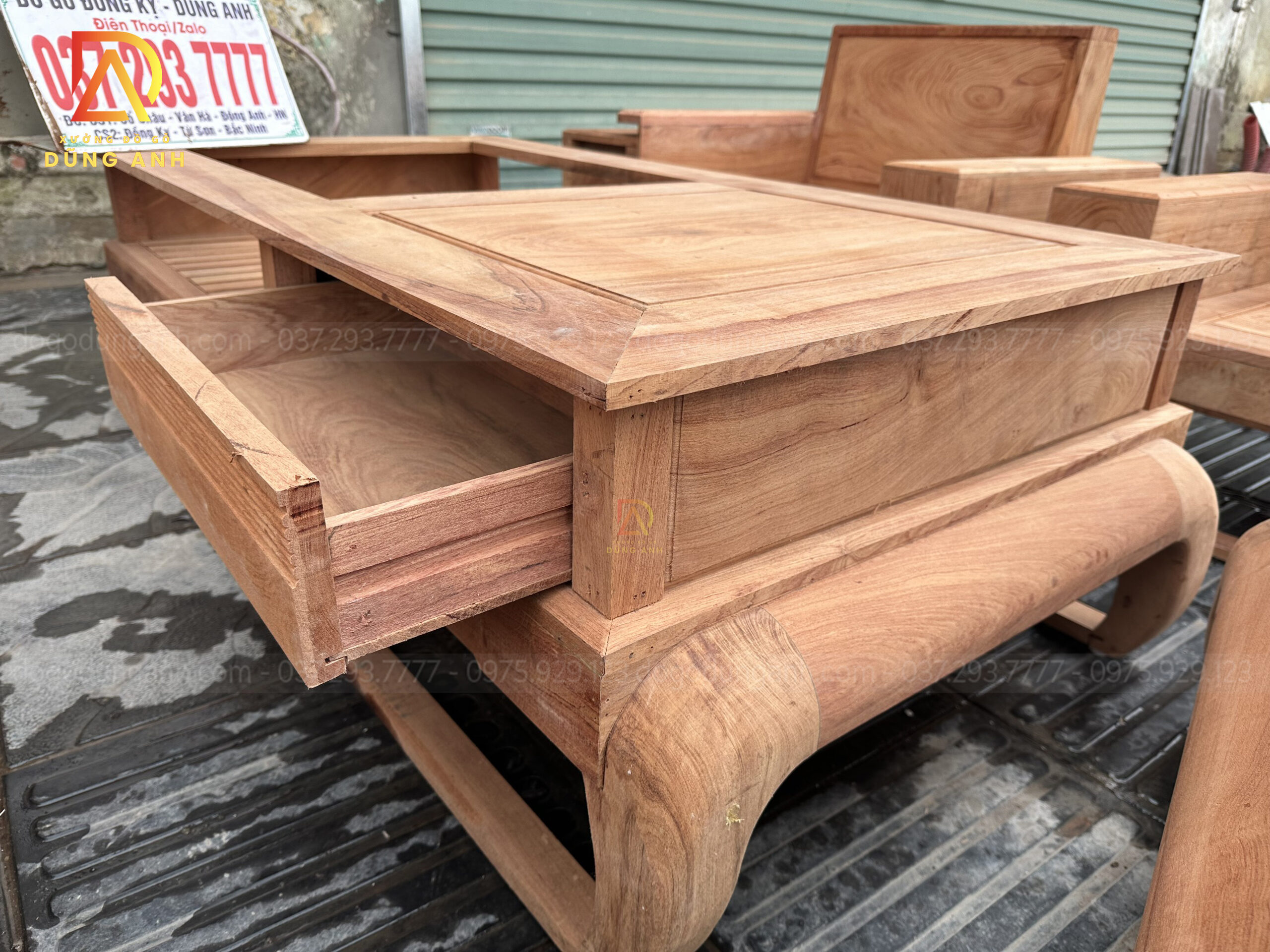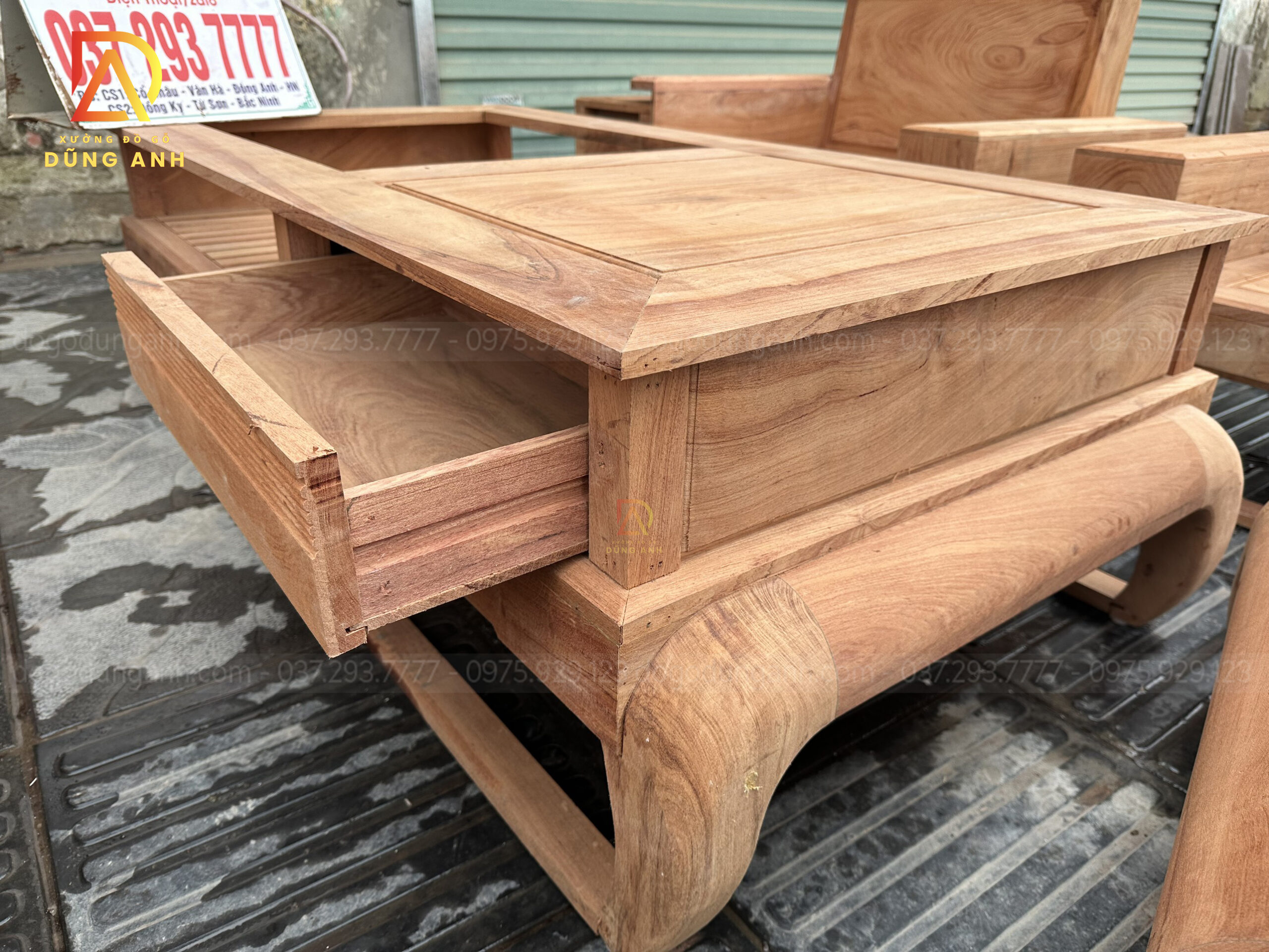 - Ngăn kéo được làm bằng một tấm ván liền nguyên khối , nhấn nhá tạo hình bó đũa tạo điểm nhấn cho chiếc bàn
