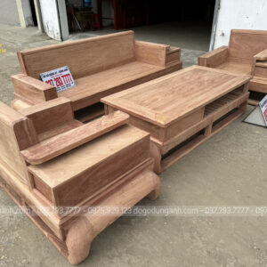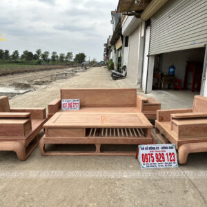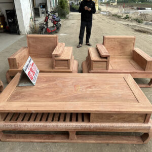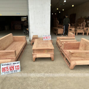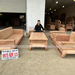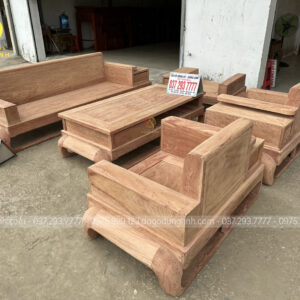 Mẫu sofa gỗ hương đá này sẽ bố trí kiểu chữ U với số lượng 5 món được đặt kích thước riêng để phù hợp với không gian phòng khách thực tế của gia đình: