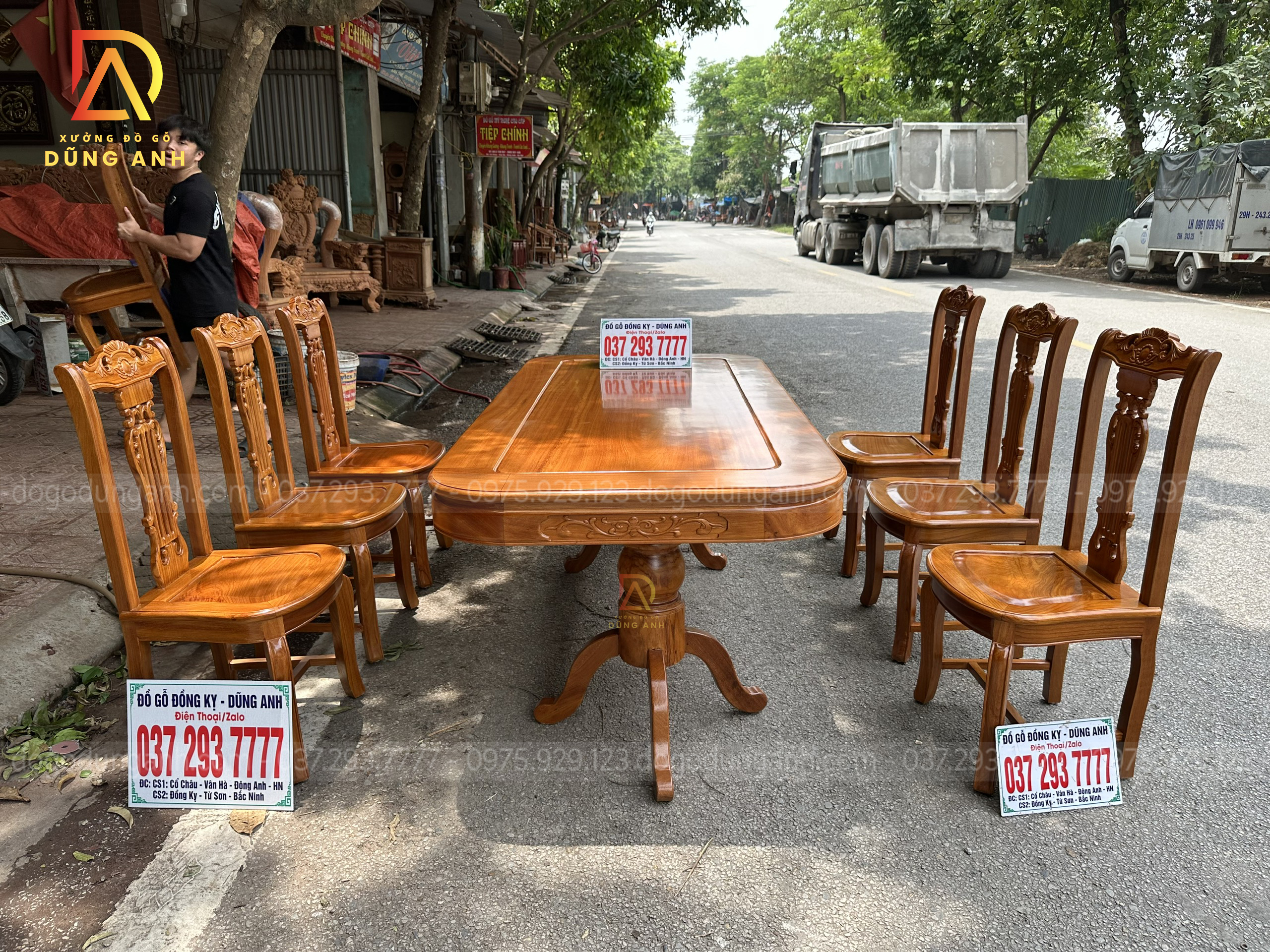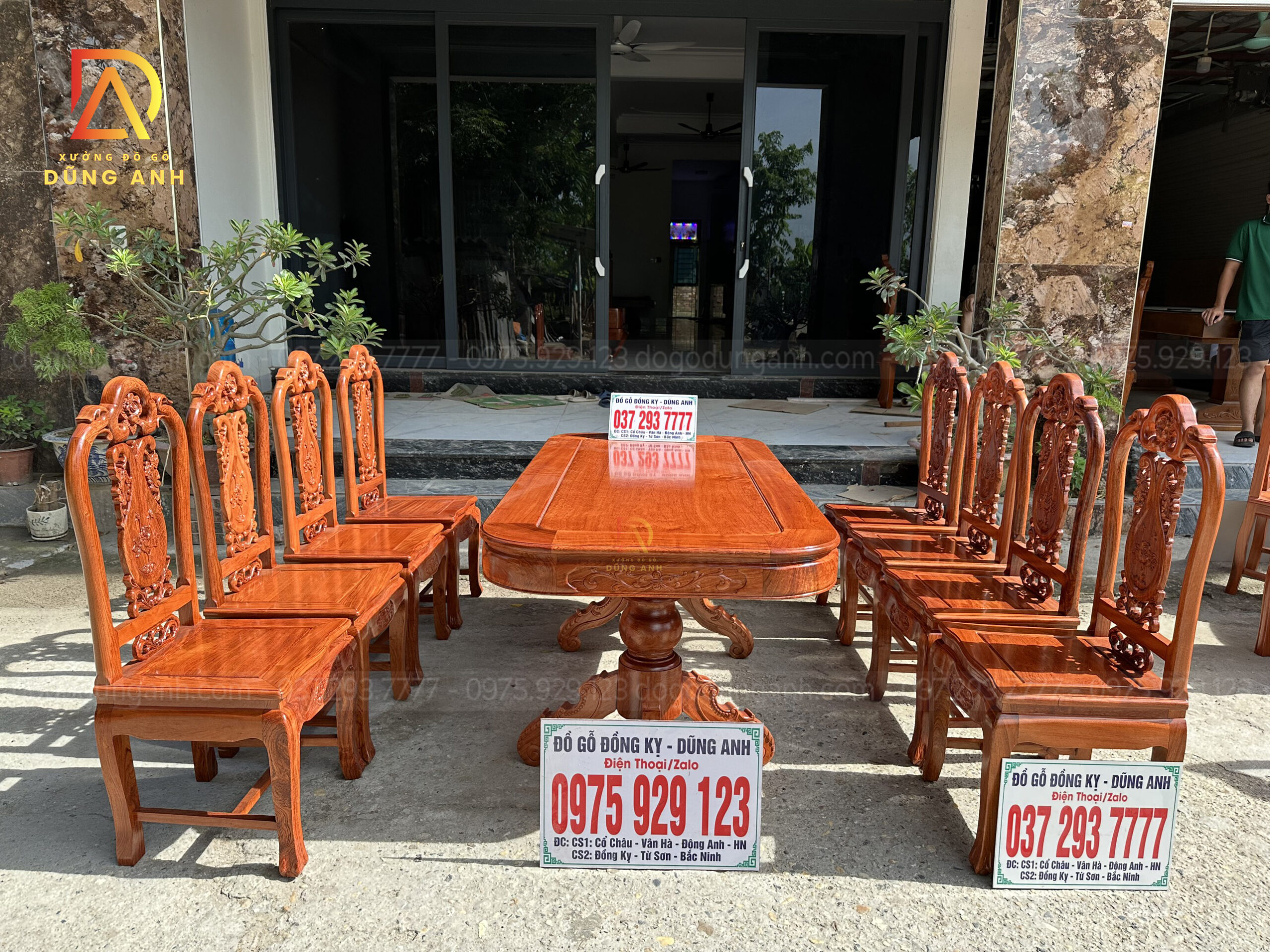 Quý khách có thể tham khảo thêm các mẫu bàn ghế ăn đẹp, bàn ghế ăn nguyên khối, các mẫu ghế ăn đẹp thì có thể liên hệ ngay với Xưởng đồ gỗ Dũng Anh qua:
