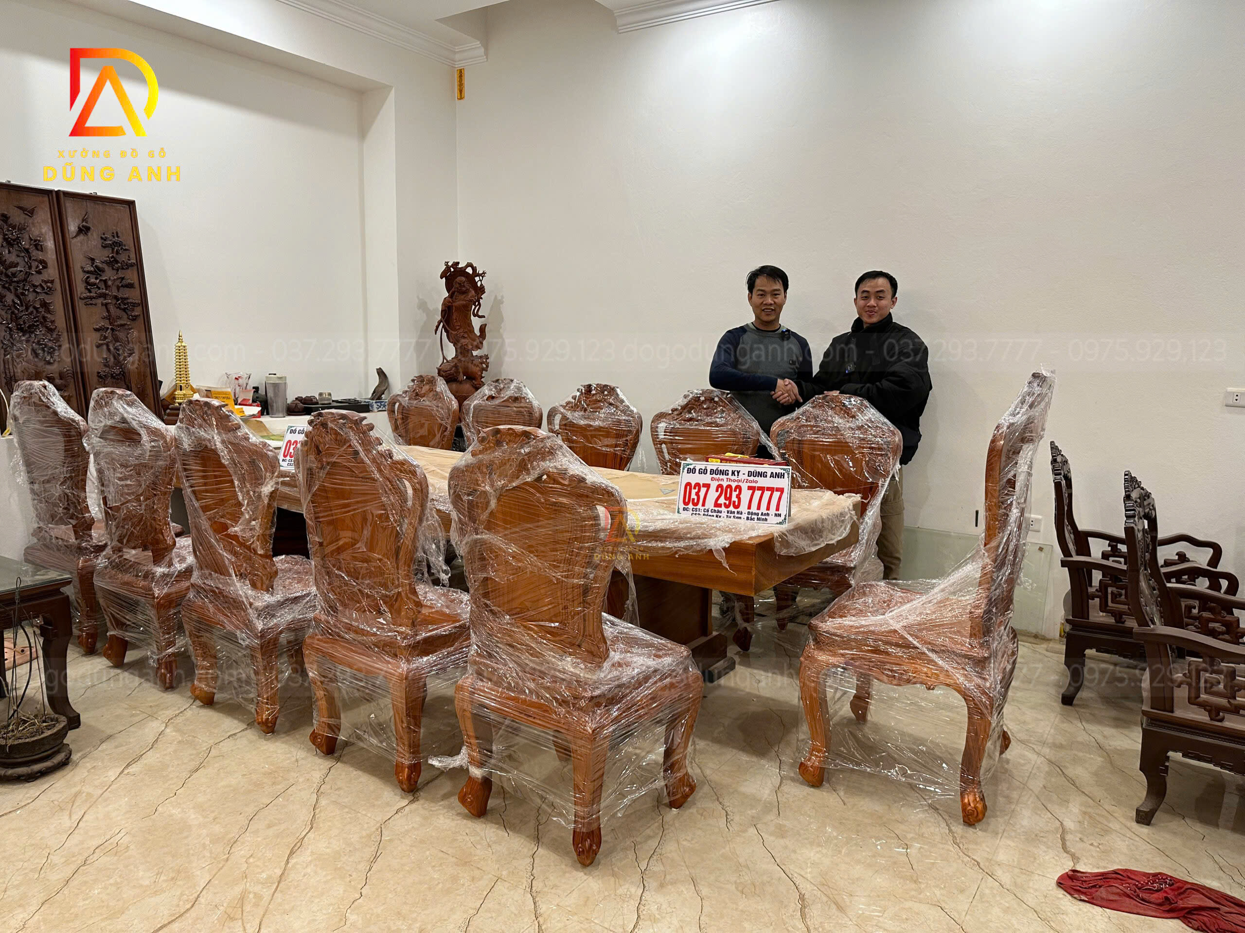 Đồ Gỗ Dũng Anh | Bàn Giao tới gia đình anh Phúc – Hải Phòng Bộ ghế hoàng gia tân cổ điển pháp + bàn chữ nhật nguyên khối – Gỗ Gõ Đỏ