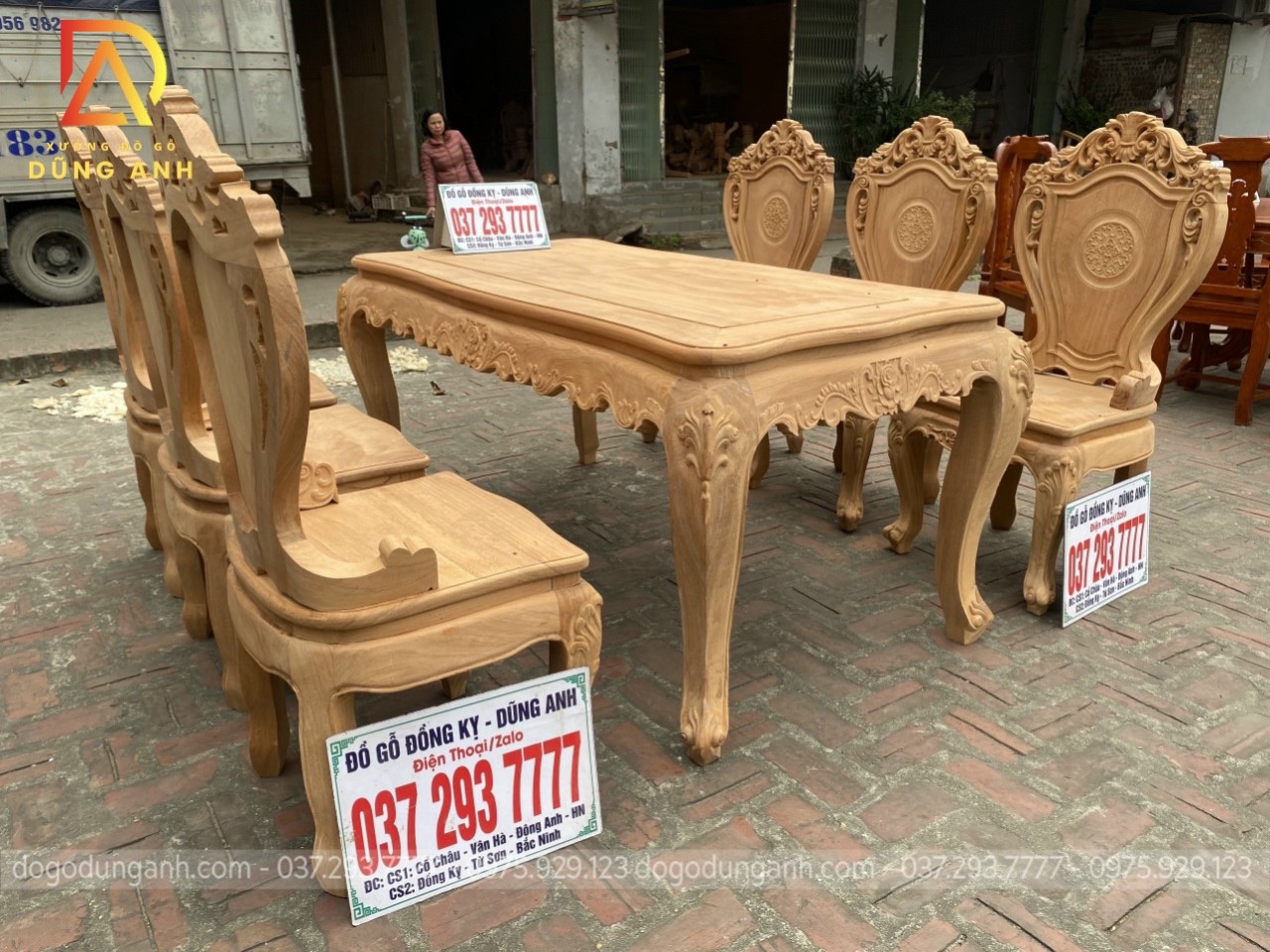 Bộ 6 ghế kết hợp với bàn bo góc vô cùng sang trọng