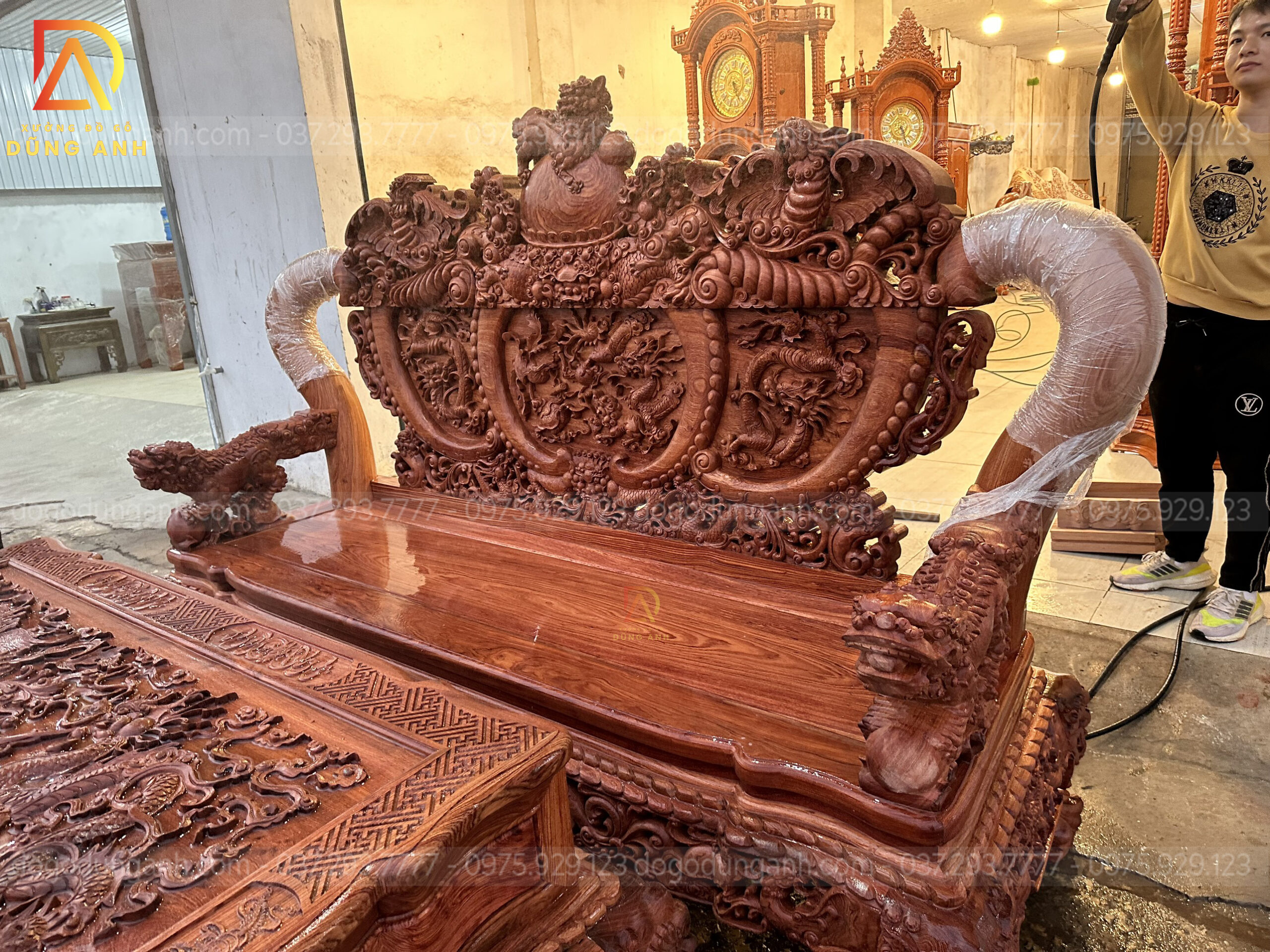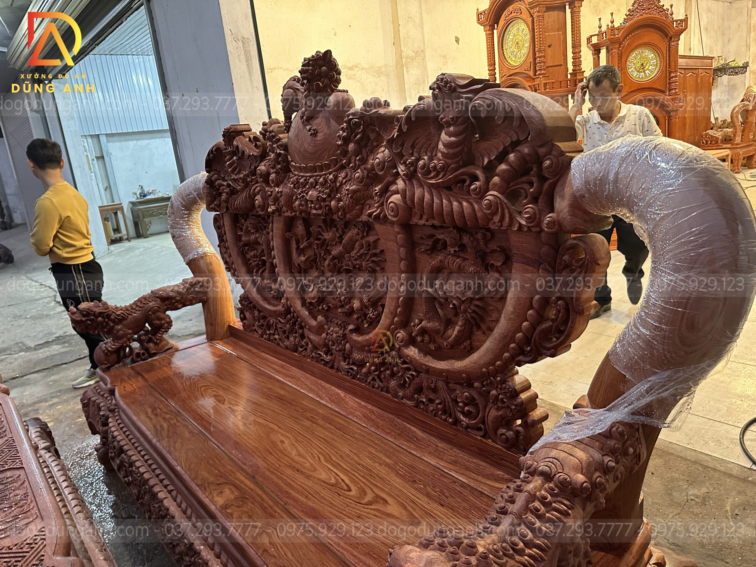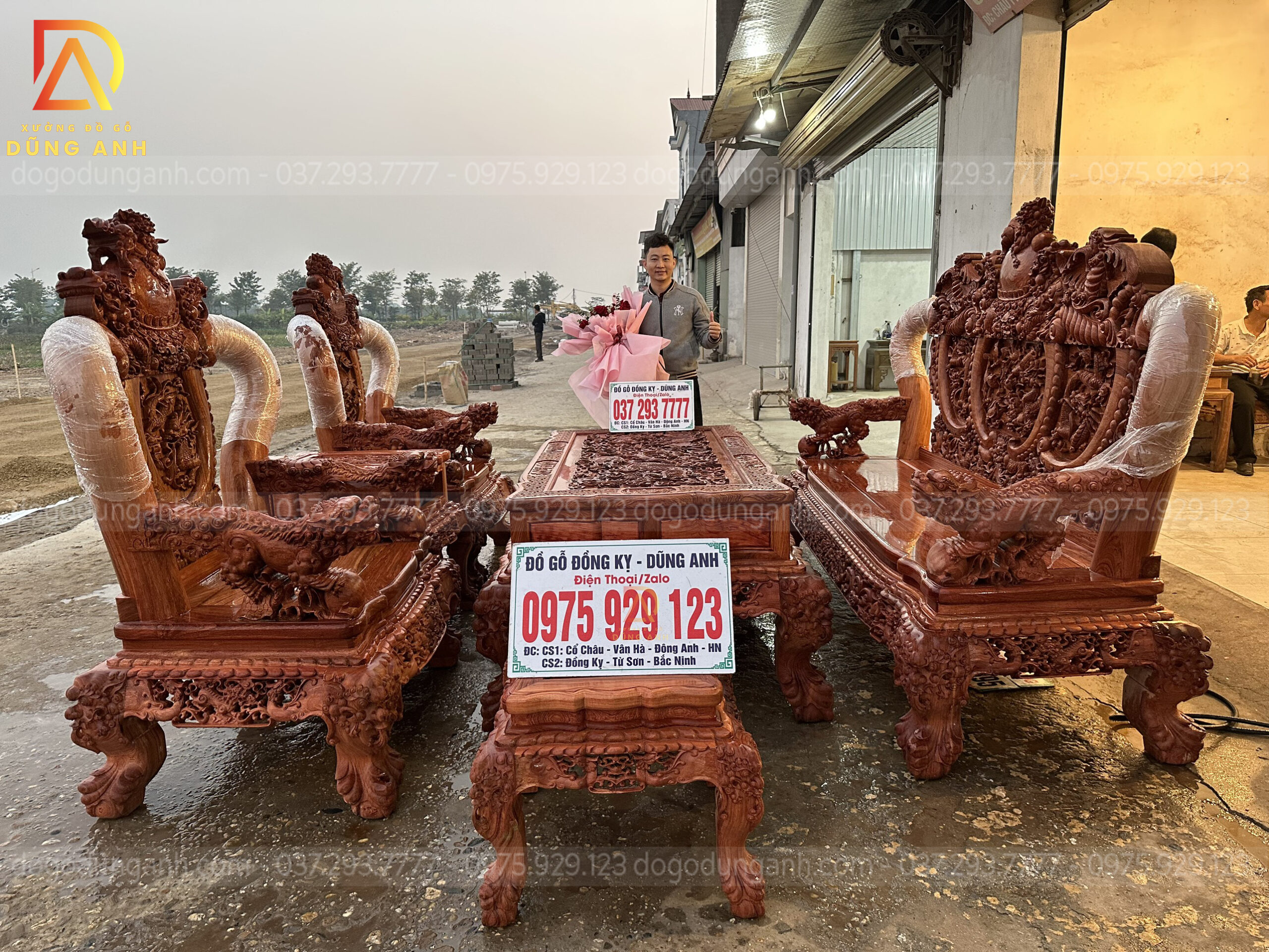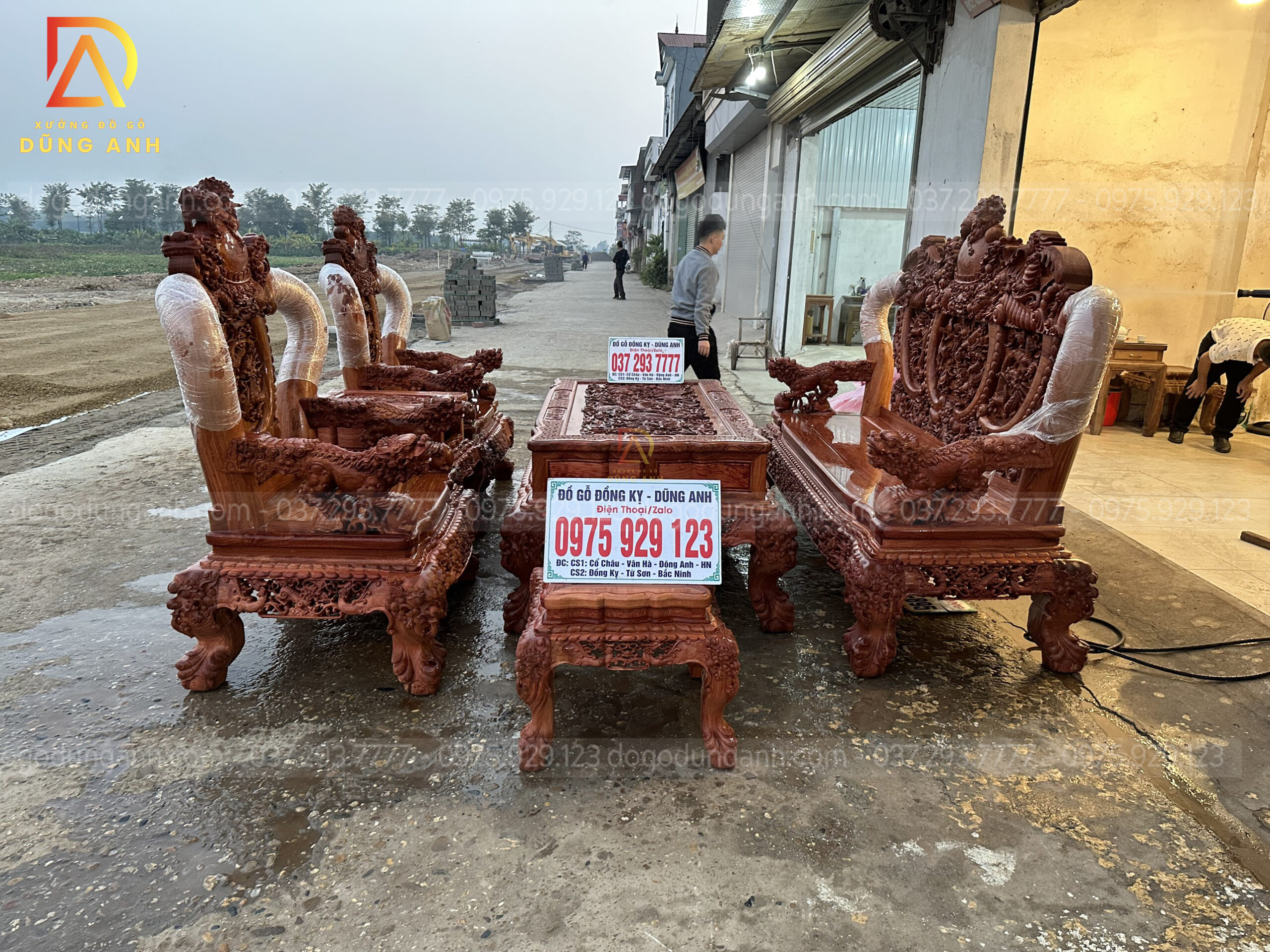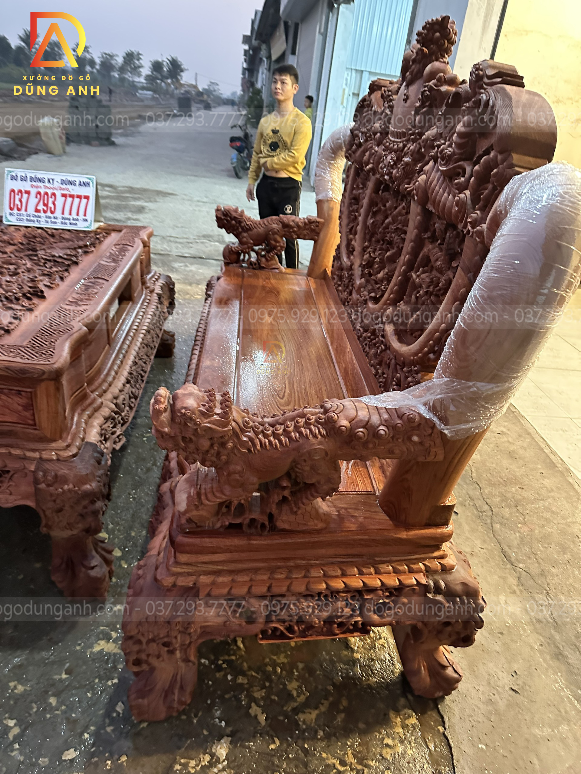 Xưởng đồ gỗ Dũng Anh xin trân trọng giới thiệu đến quý khách hàng bộ sản phẩm vừa hoàn thiện dựng mộc bộ bàn ghế Nghê Bảo Đỉnh tay cột 16 gỗ hương đá hàng siêu VIP cực dày dặn và làm vô cùng chắc chắn