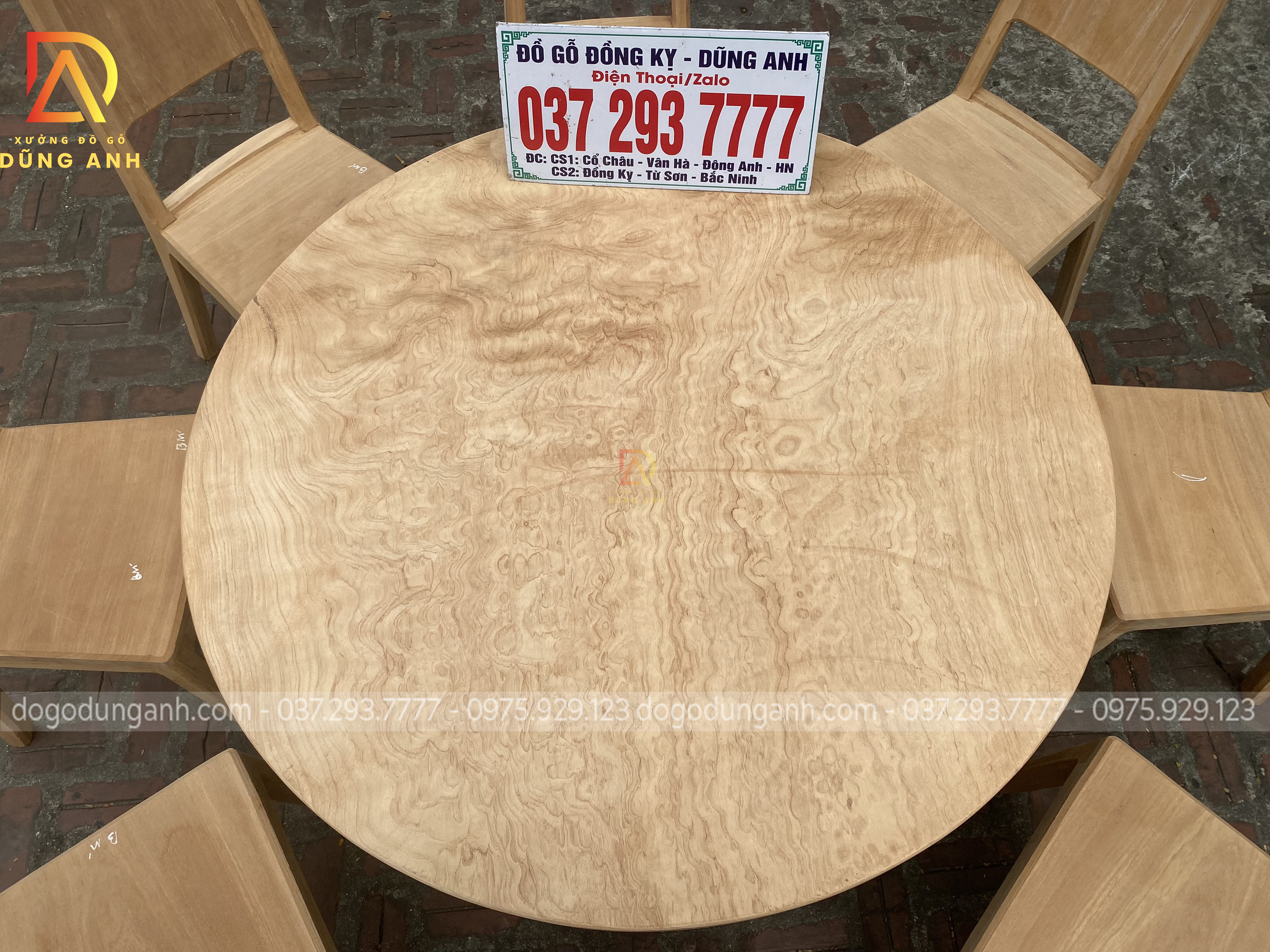 - Mặt bàn của SIÊU PHẨM này sở hữu kích thước đường kính là 132cm và dày 6cm, hoàn toàn nguyên khối 100% bên Xưởng đồ gỗ Dũng Anh chúng em xin được cam kết.