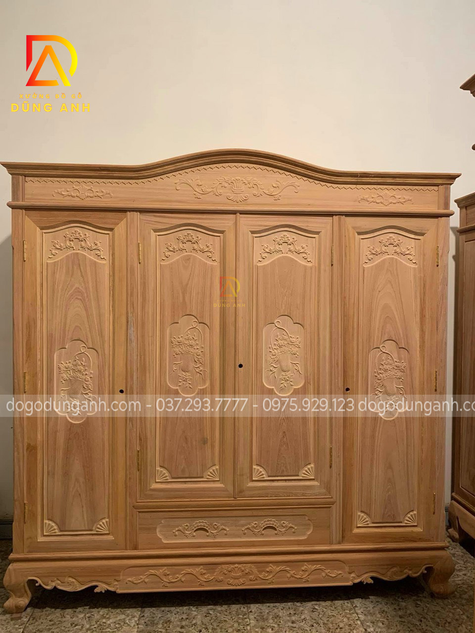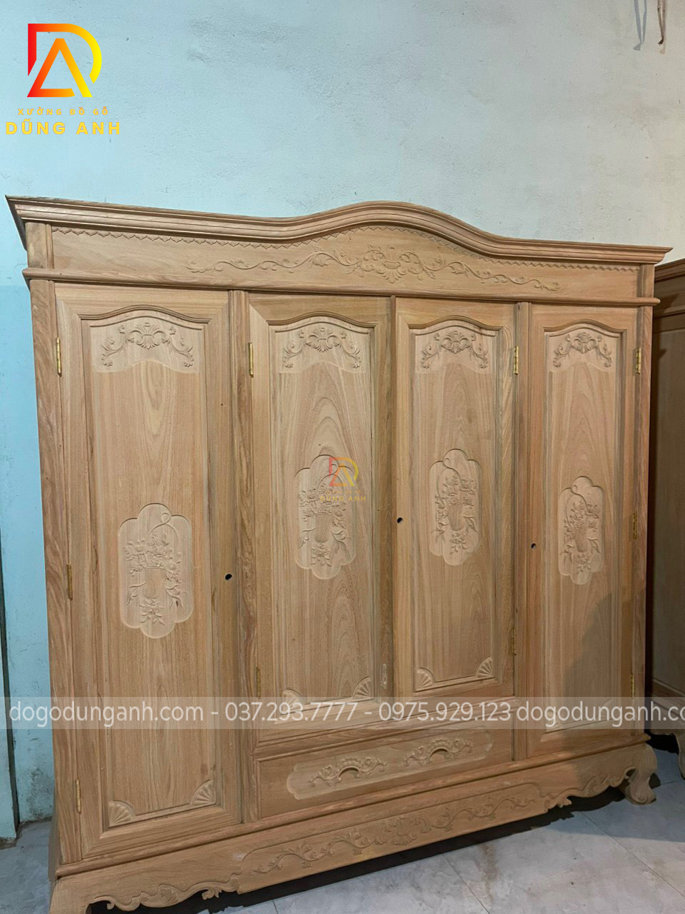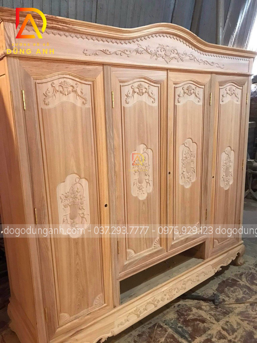 Tủ quần áo 3 buồng 4 cánh gỗ hương đá