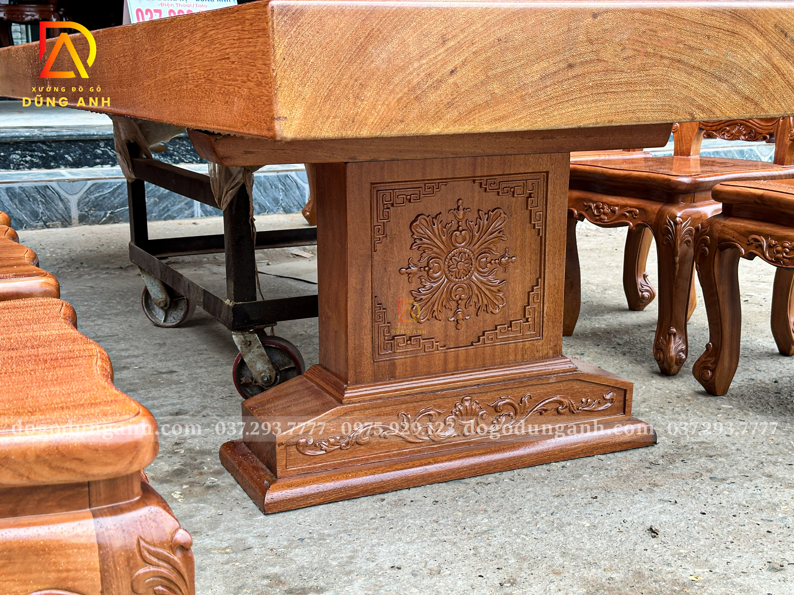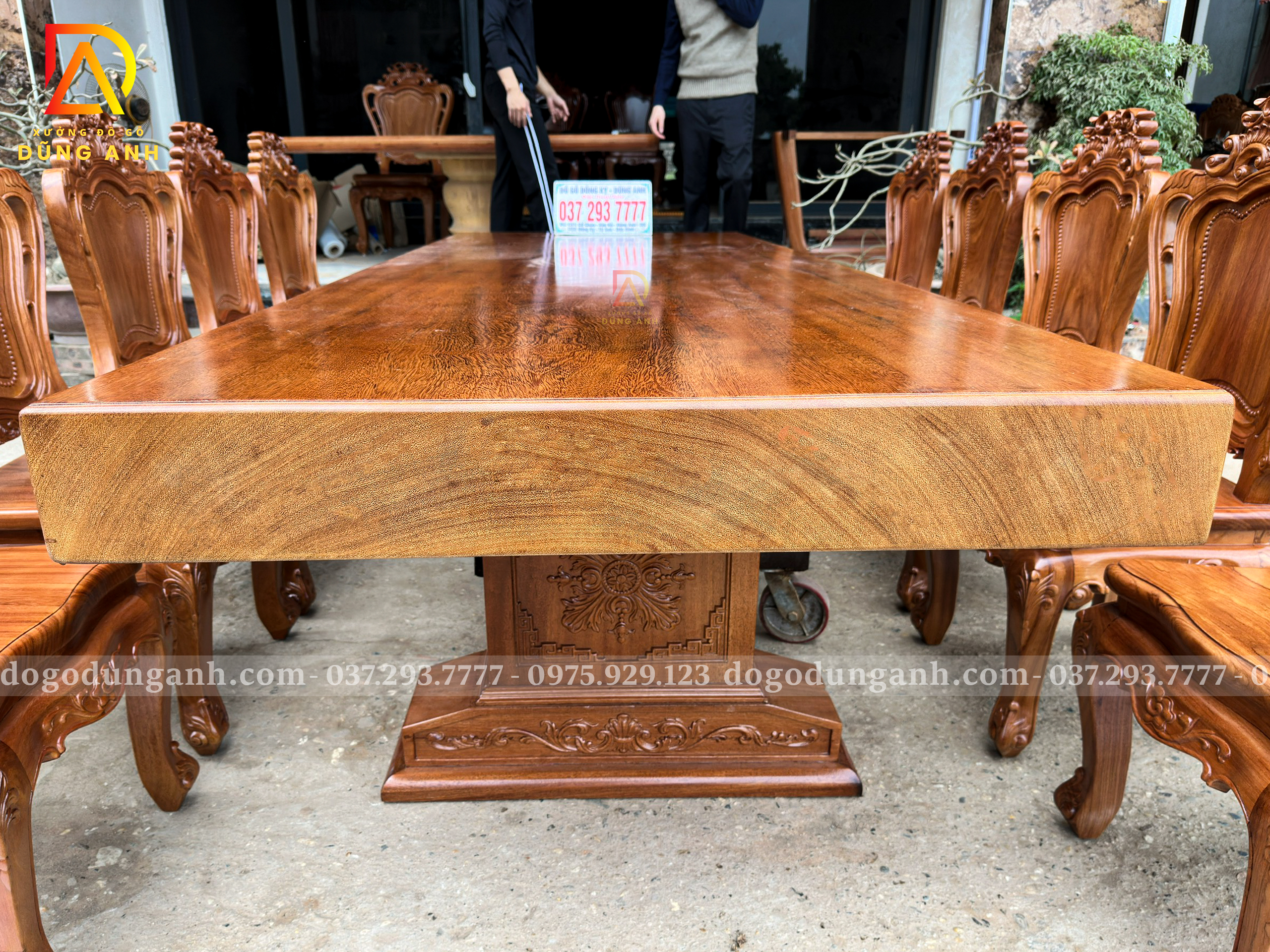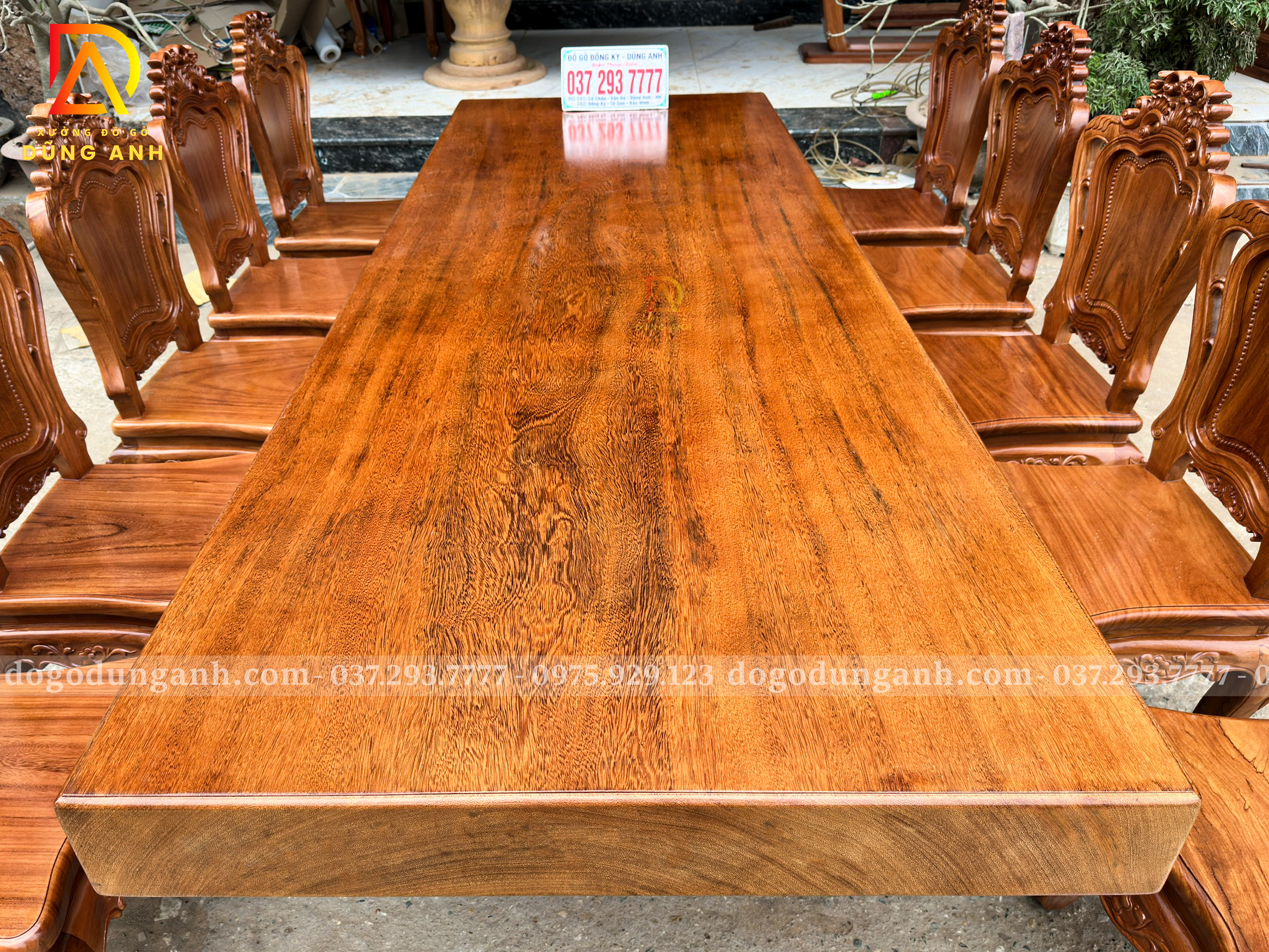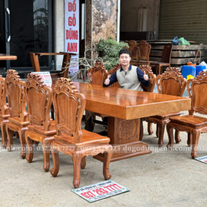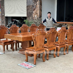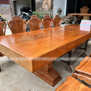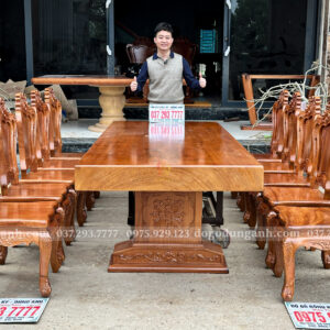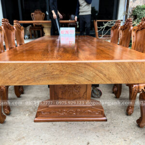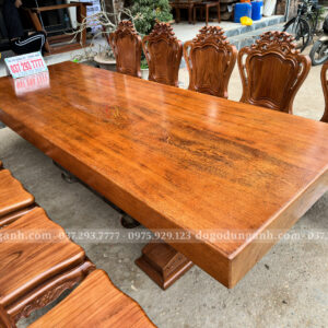 Chiếc bàn nguyên khối được chế tác từ gỗ Gõ Đỏ Nam Phi tuyển chọn, chỉ sử dụng những tấm gỗ có đường vân đẹp, sắc nét và đồng đều. Mỗi thớ gỗ mang một dấu ấn riêng biệt, không trùng lặp, tạo nên vẻ đẹp tự nhiên, sang trọng mà không cần bất kỳ sự tô vẽ cầu kỳ nào