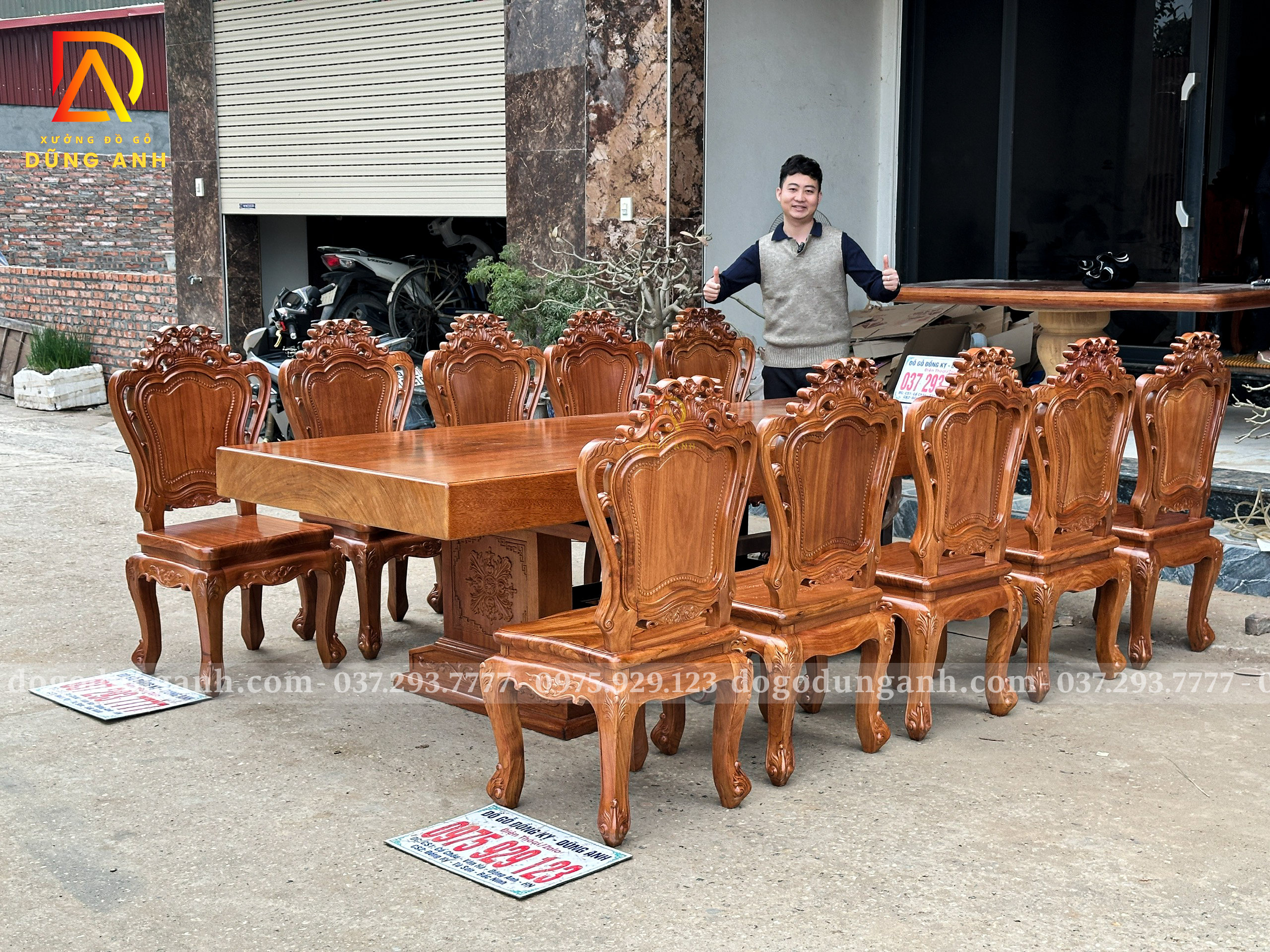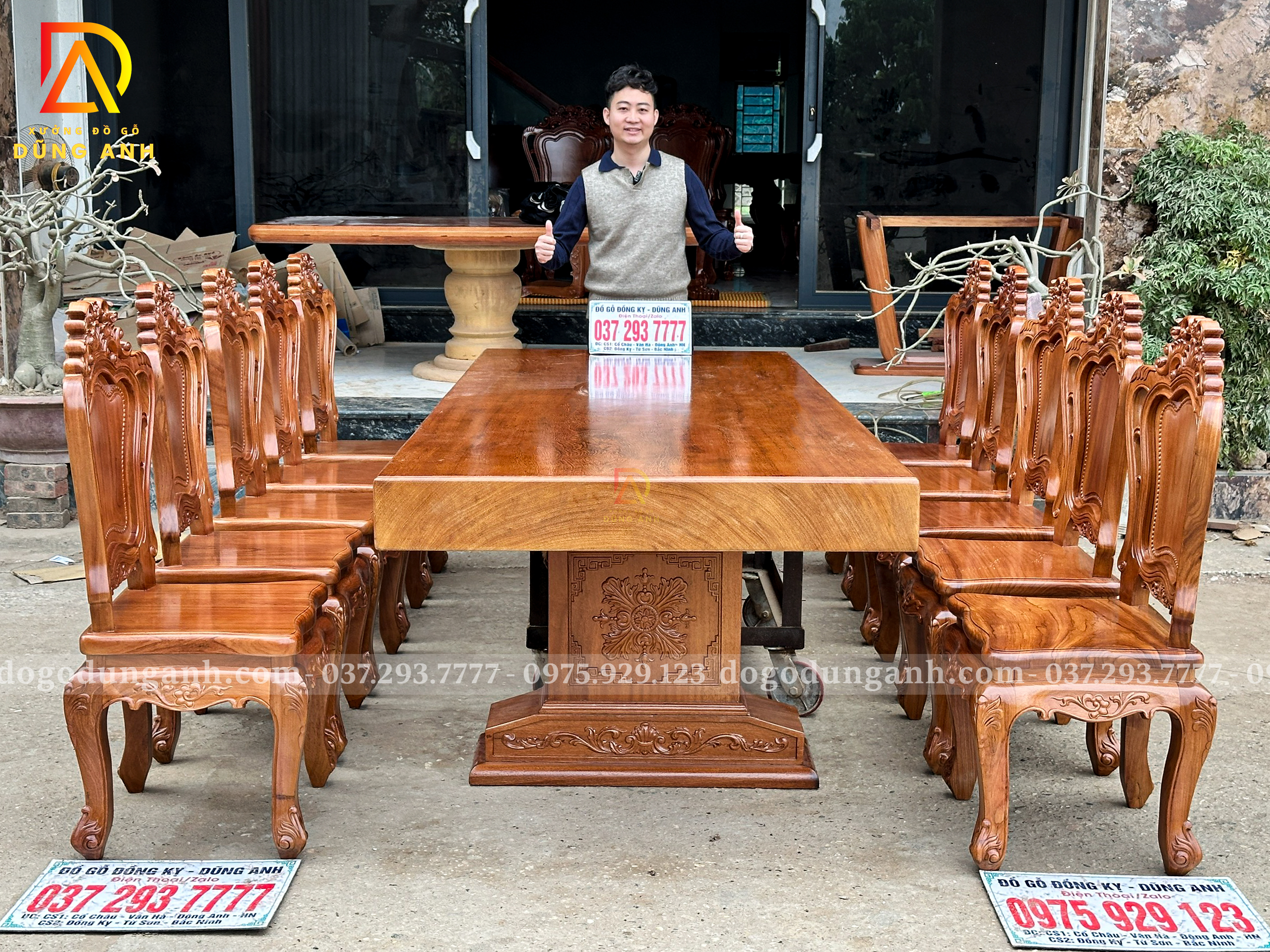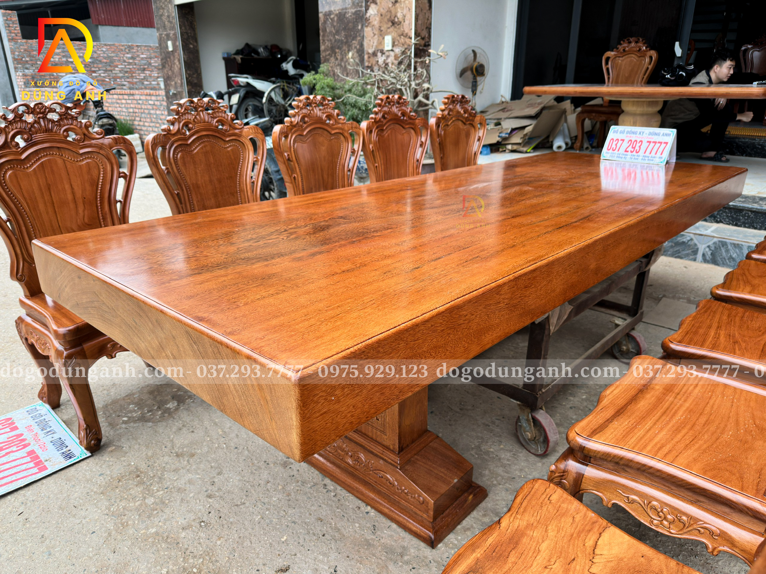 Chiếc bàn nguyên khối được chế tác từ gỗ Gõ Đỏ Nam Phi tuyển chọn, chỉ sử dụng những tấm gỗ có đường vân đẹp, sắc nét và đồng đều. Mỗi thớ gỗ mang một dấu ấn riêng biệt, không trùng lặp, tạo nên vẻ đẹp tự nhiên, sang trọng mà không cần bất kỳ sự tô vẽ cầu kỳ nào