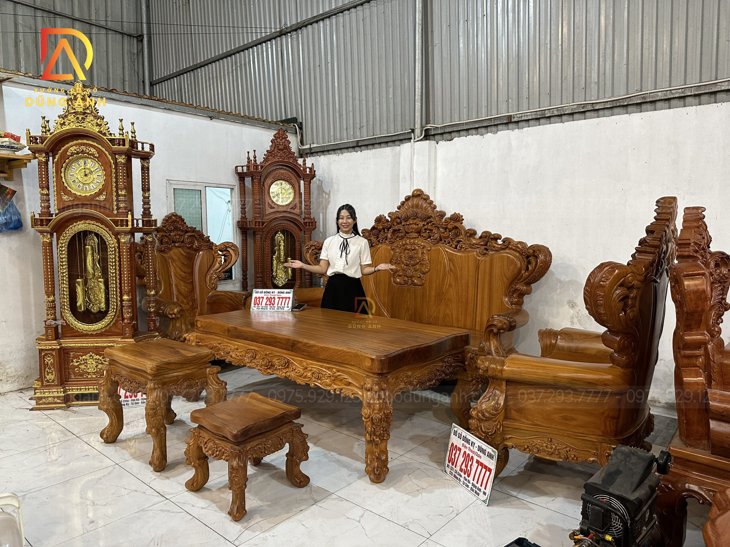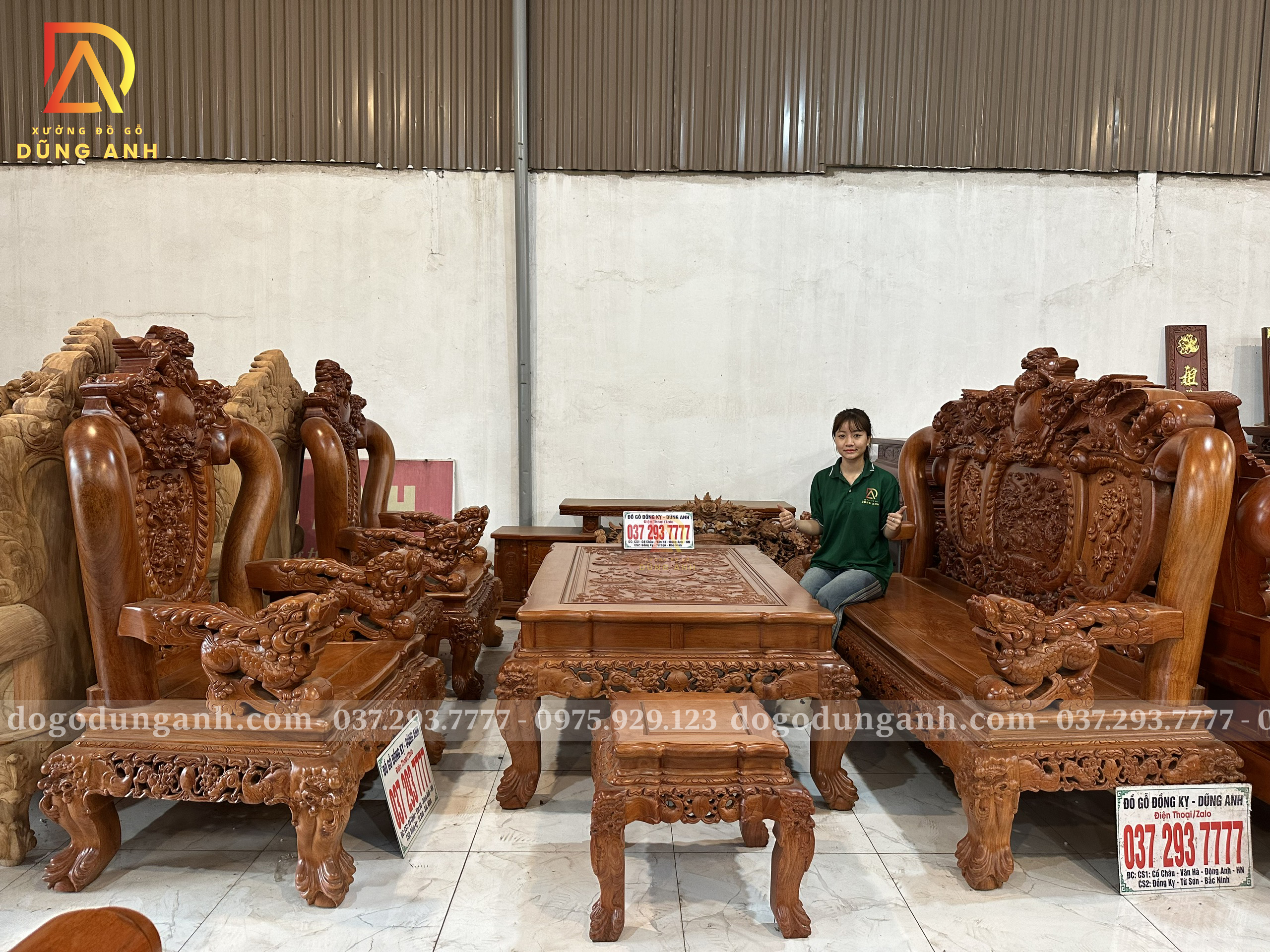 Chưa kể, các nghệ nhân của Đồ Gỗ Dũng Anh còn chú trọng đến từng chi tiết thiết kế, tạo nên những sản phẩm vừa đẹp mắt, vừa tiện dụng. Mỗi bộ bàn ghế phòng khách gỗ thịt không chỉ là một món đồ nội thất đơn giản mà còn là một tác phẩm nghệ thuật, mang lại vẻ đẹp thanh thoát, nhẹ nhàng cho không gian.